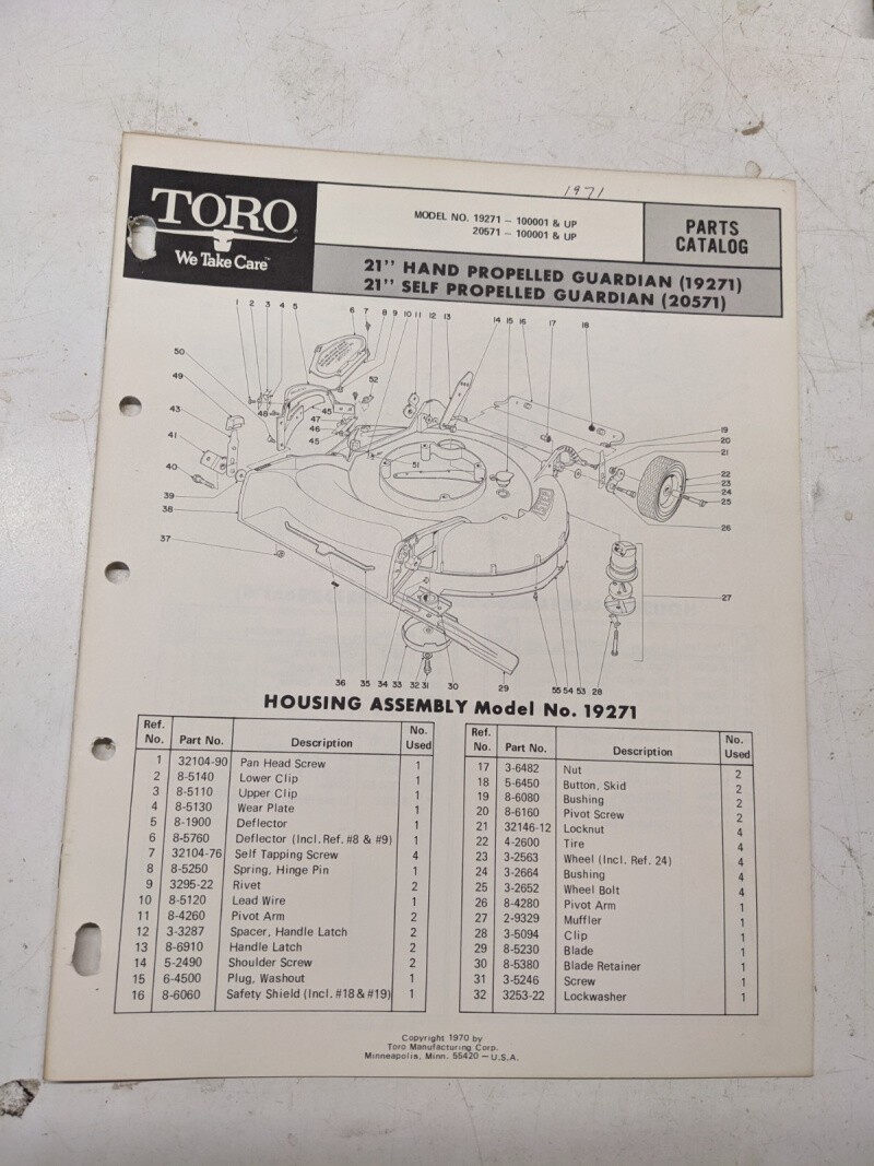 Toro Parts Catalog List Book Manual 21” Guardian Lawn Mower 19271 20571 1970