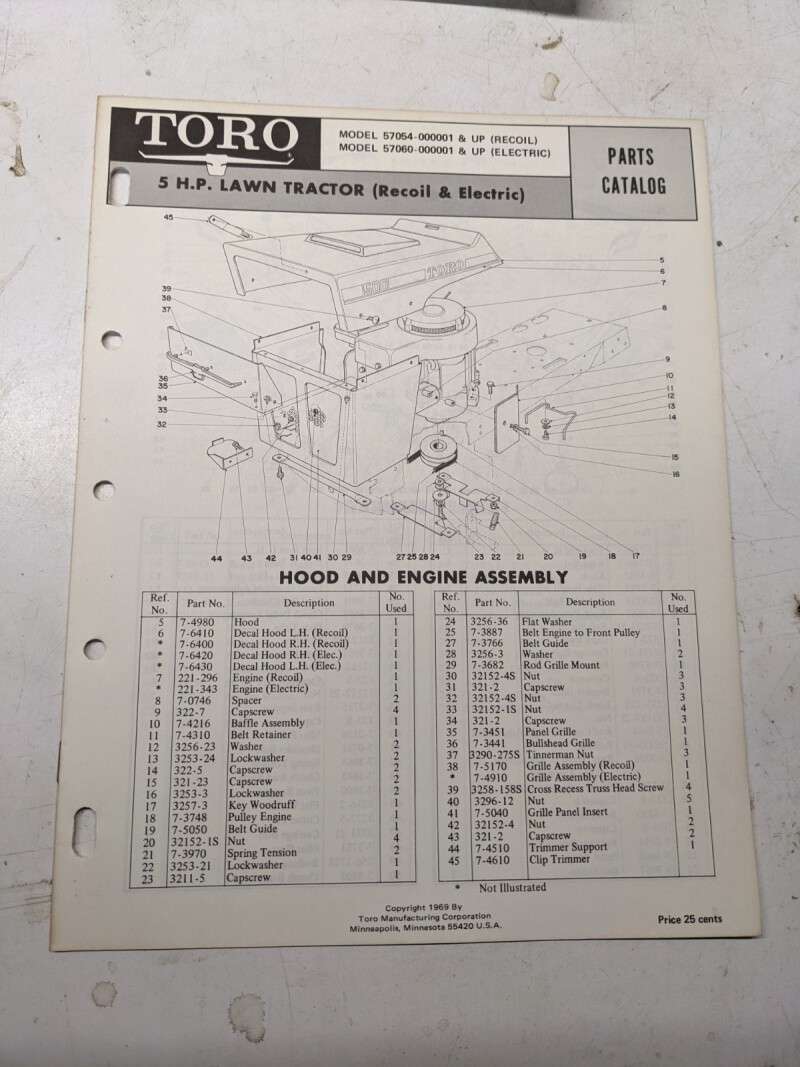 Toro Parts Catalog List Book Manual 5Hp Lawn Tractor 57054 57060 1969