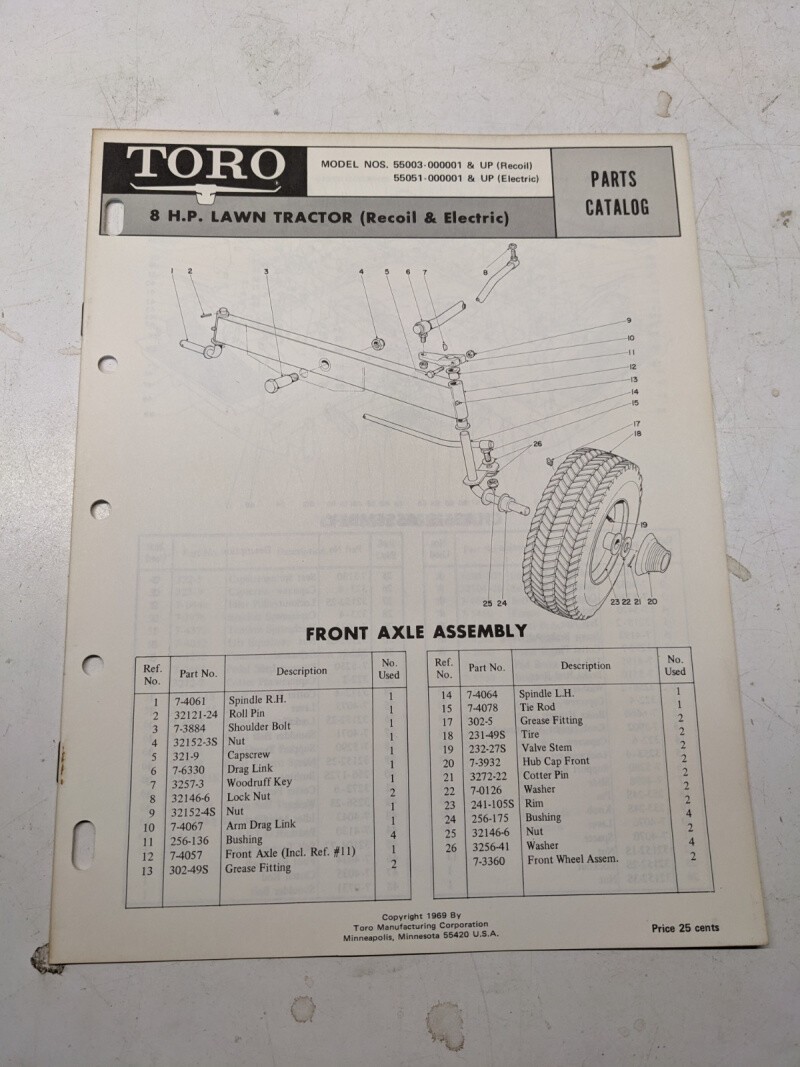Toro Parts Catalog List Book Manual 8Hp Lawn Tractor 55003 55051 1969
