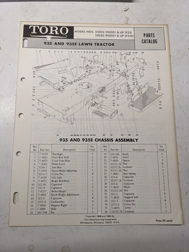 Toro Parts Catalog List Book Manual Lawn Tractor 55002 55050 935 935E 1968 1969