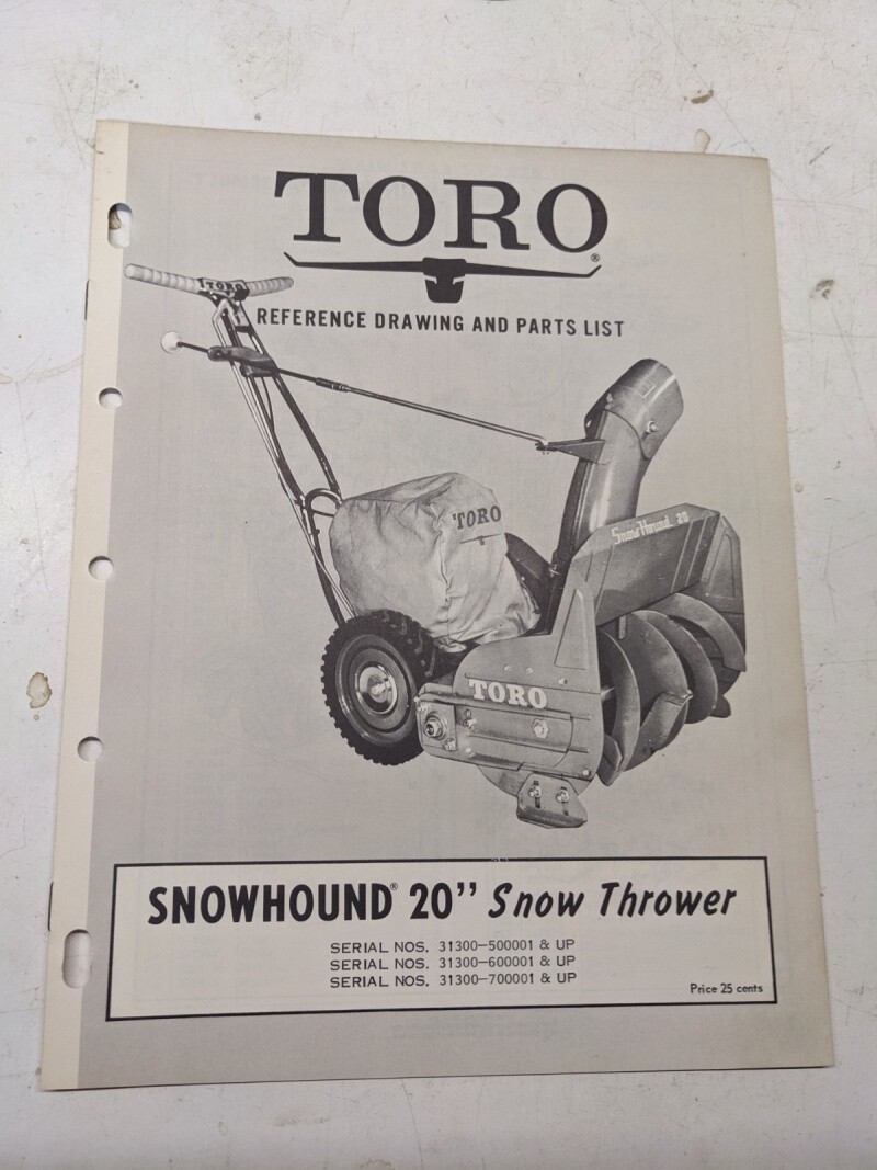 Toro Parts Catalog List Book Manual Ref Drawing Snow Hound 20” Blower 313000