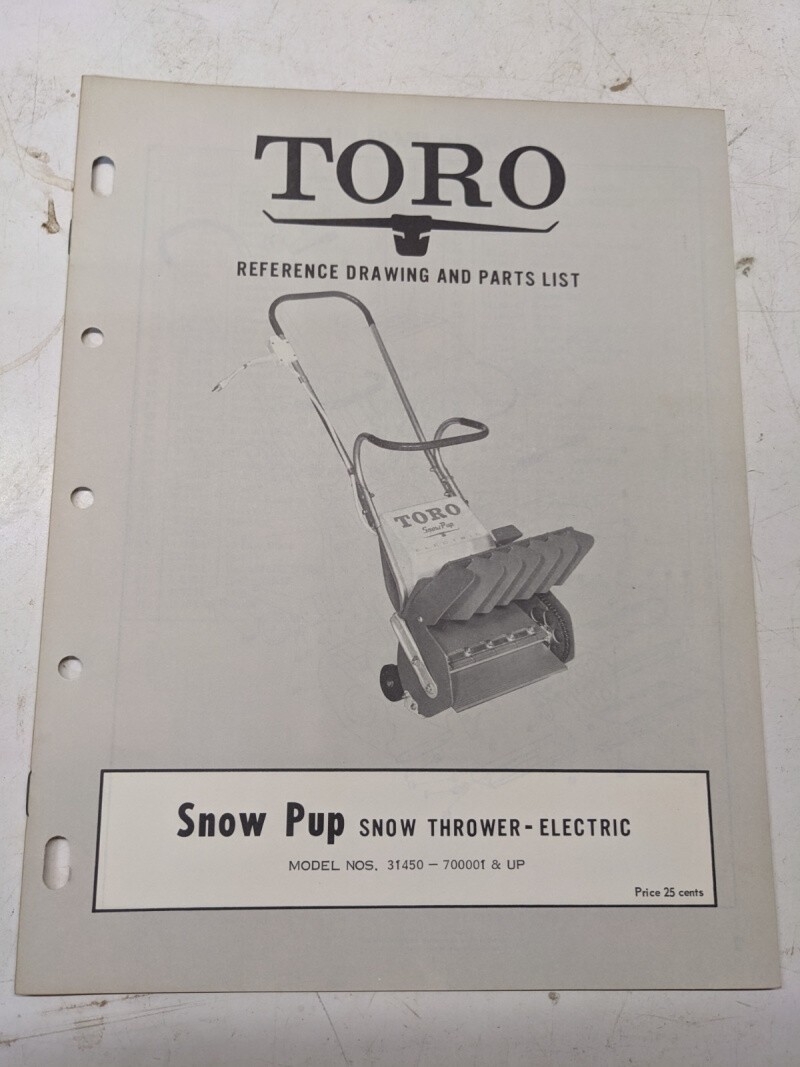 Toro Parts Catalog List Book Manual Reference Drawing Snow Pup 31450 7001 Blower