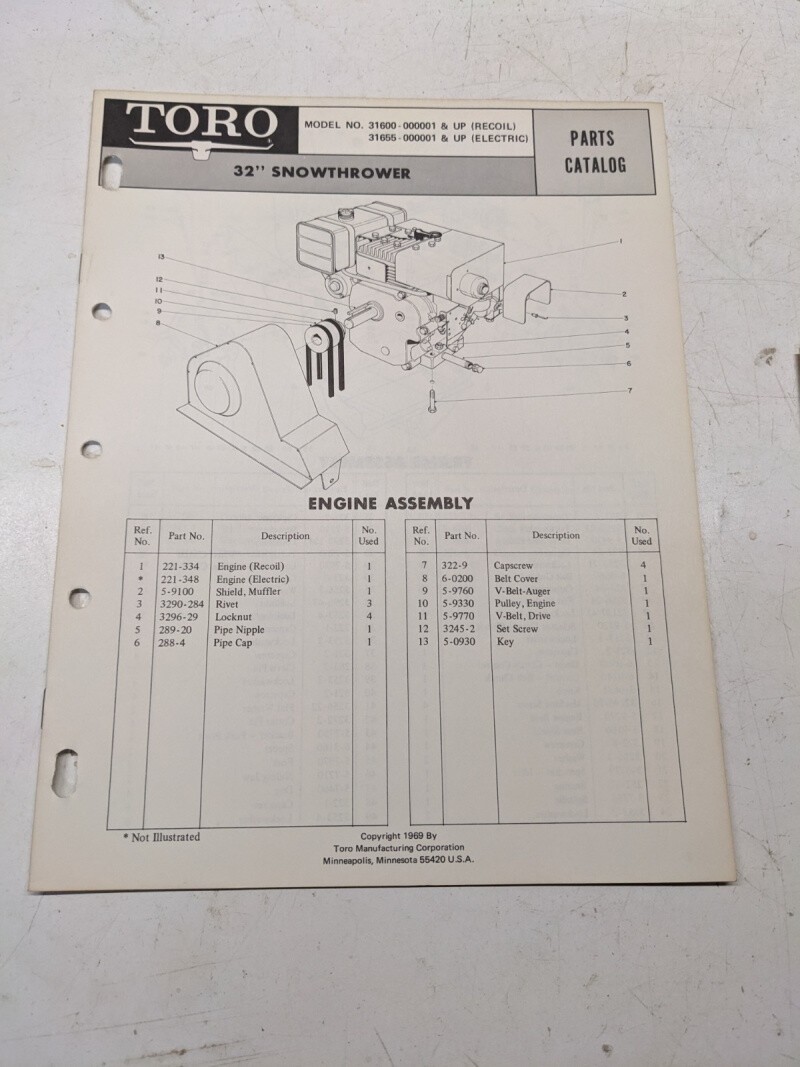 Toro Parts Catalog List Book Manual Snowthrower 32” 31600 31655 1969 Blower