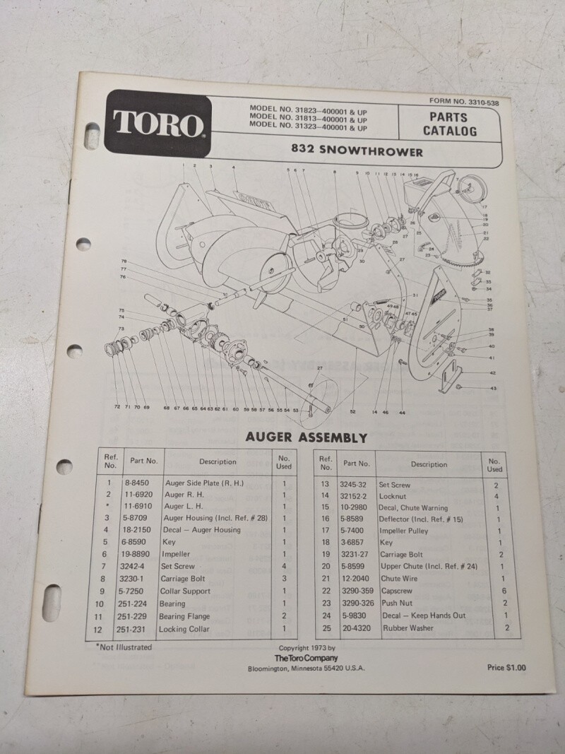 Toro Parts Catalog List Book Manual Snowthrower 832 Blower 31823 31813 31323