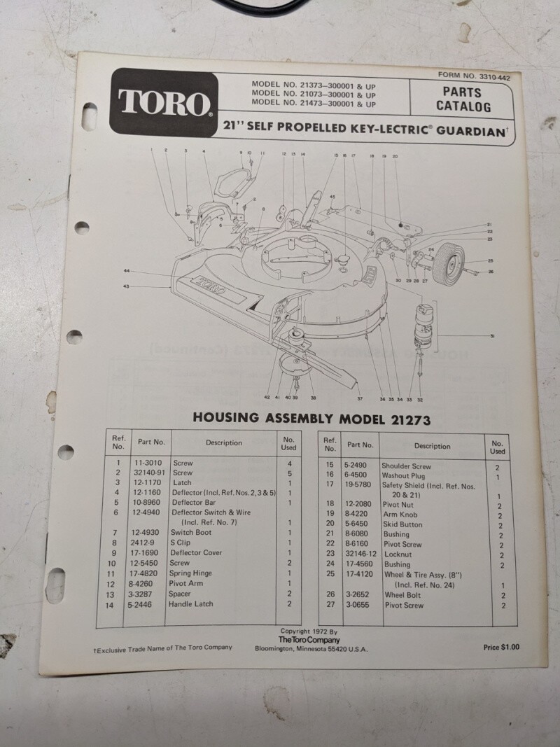Toro Parts Catalog List Manual Book 21” Guardian Keylectric 21373 21073 21473 72