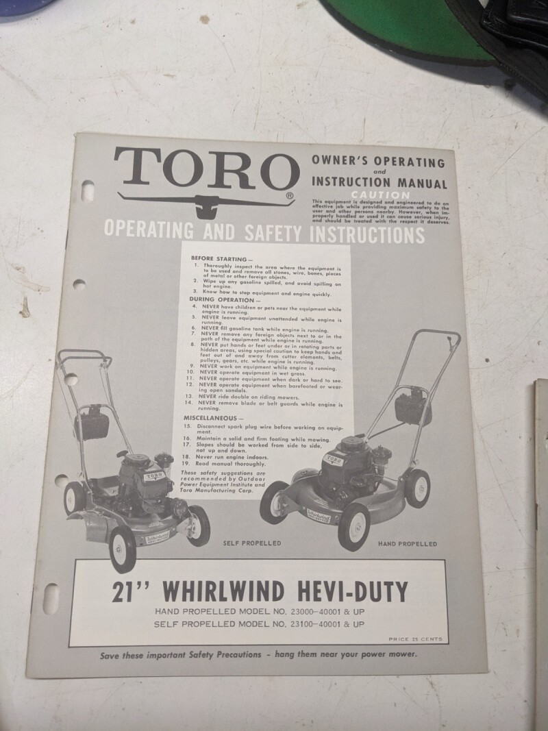 Toro Parts Catalog List Manual Owner Operating 21” Whirlwind Hevi-Duty 23000 100