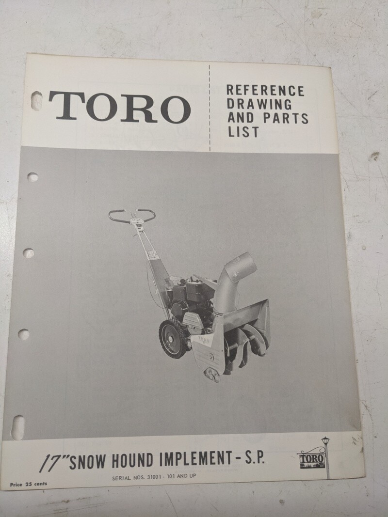 Toro Parts Catalog List Manual Reference Drawing 17” Snow Hound Implement Sp