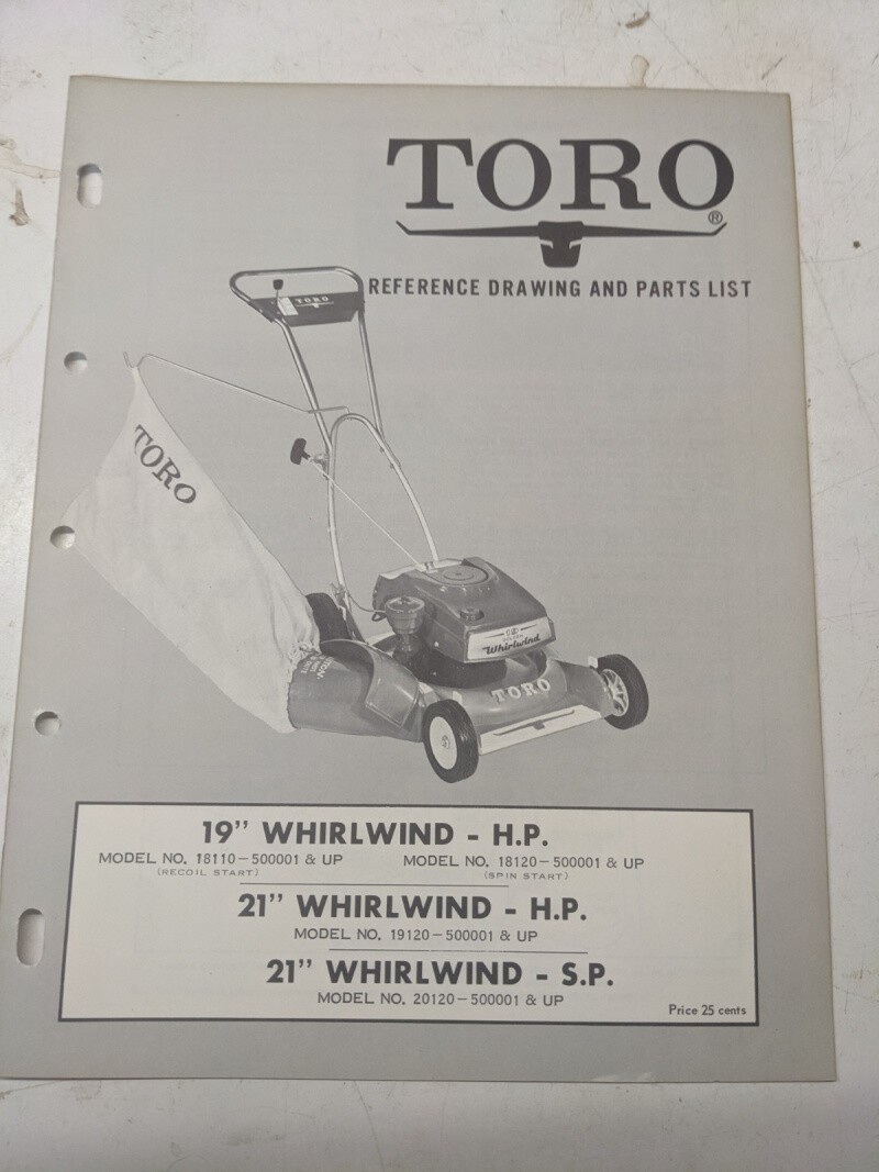 Toro Parts Catalog List Manual Reference Drawing 19 21” Whirlwind Hp Sp 20120 5