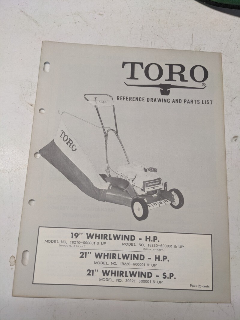 Toro Parts Catalog List Manual Reference Drawing 19 21” Whirlwind Hp Sp 20221