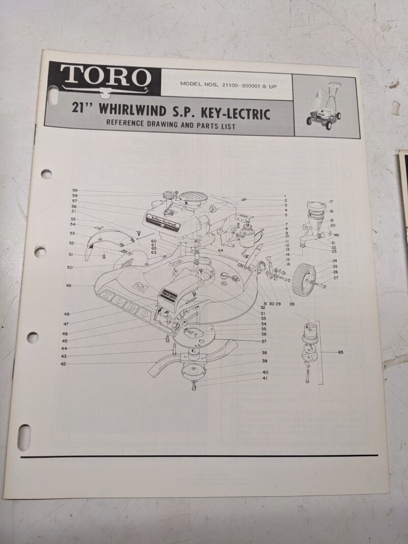 Toro Parts Catalog List Manual Reference Drawing 19” Whirlwind Sp Keyelectric