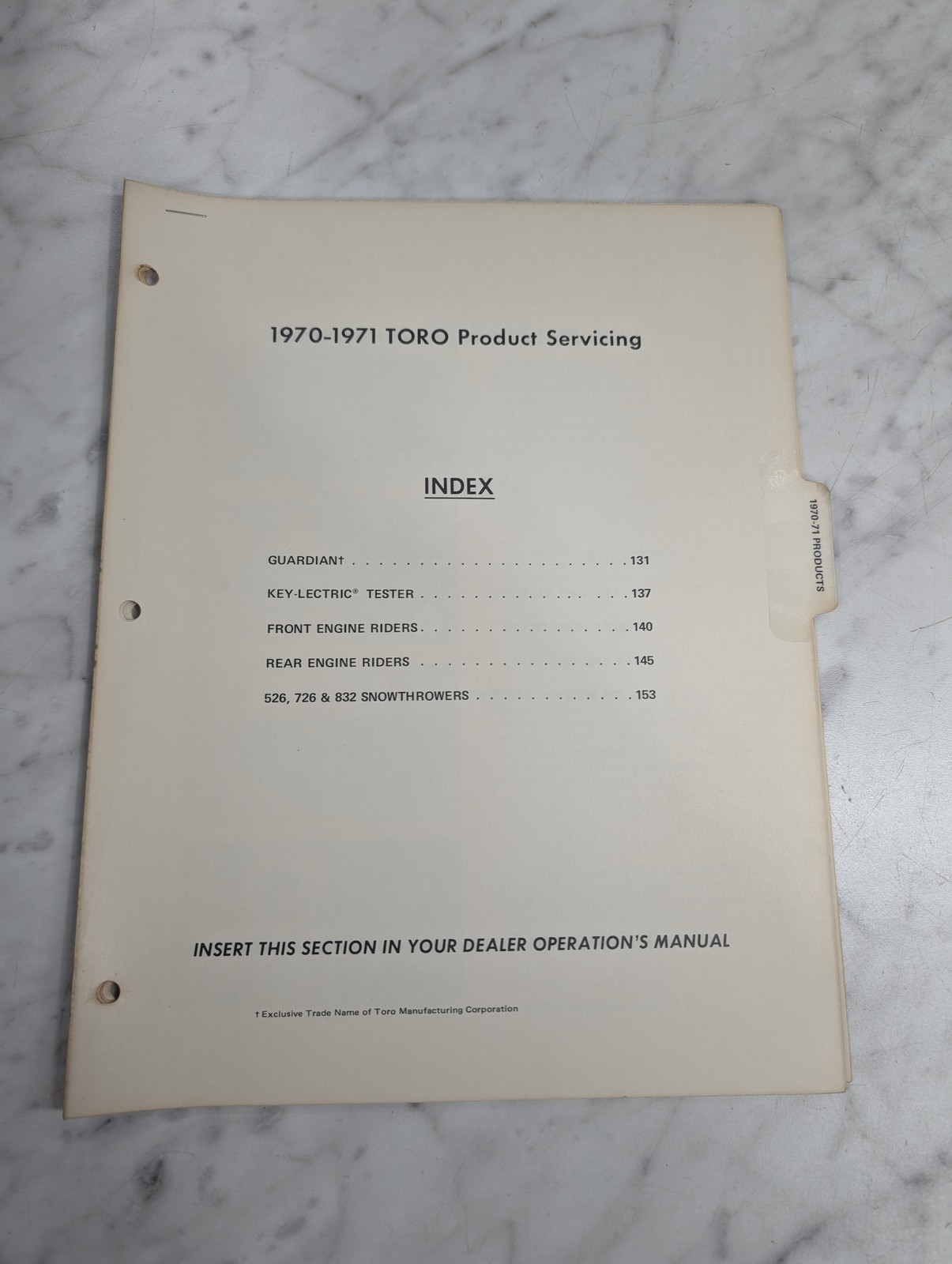Toro Product Servicing Manual Mower Repair Manual Service Shop Book 1970-1971
