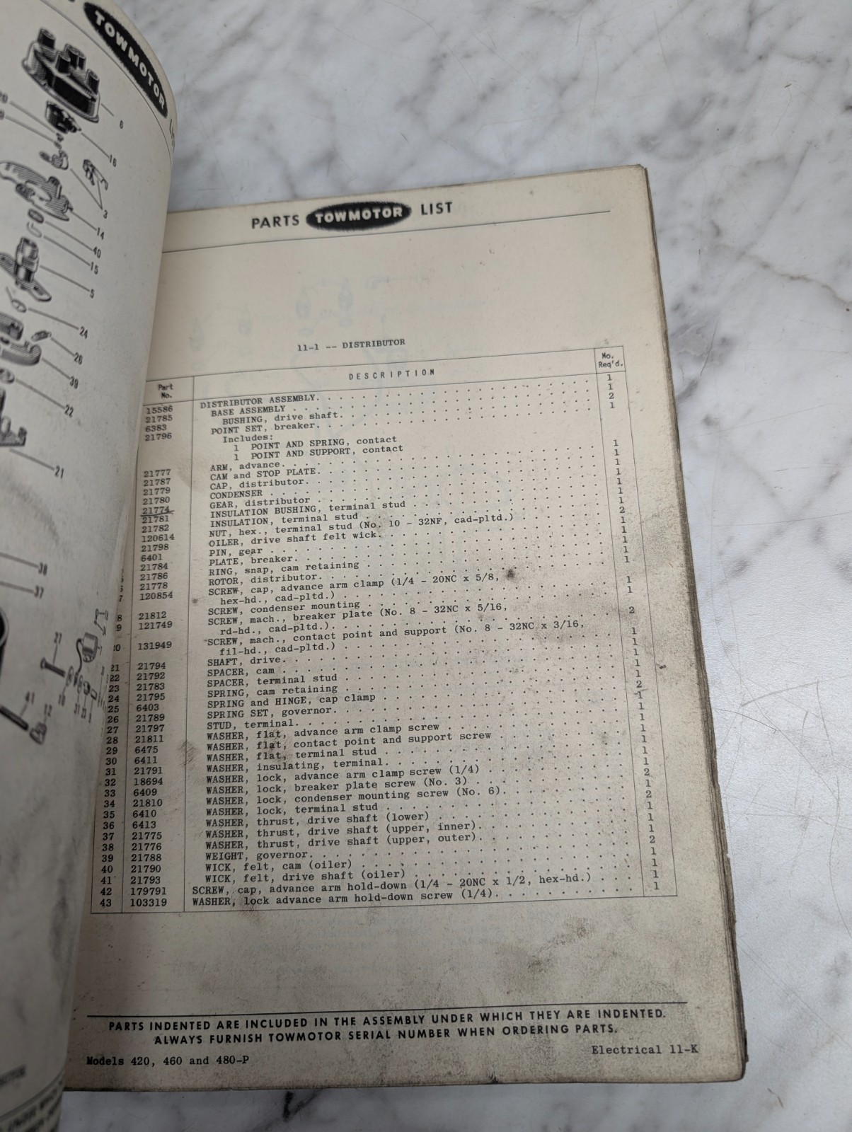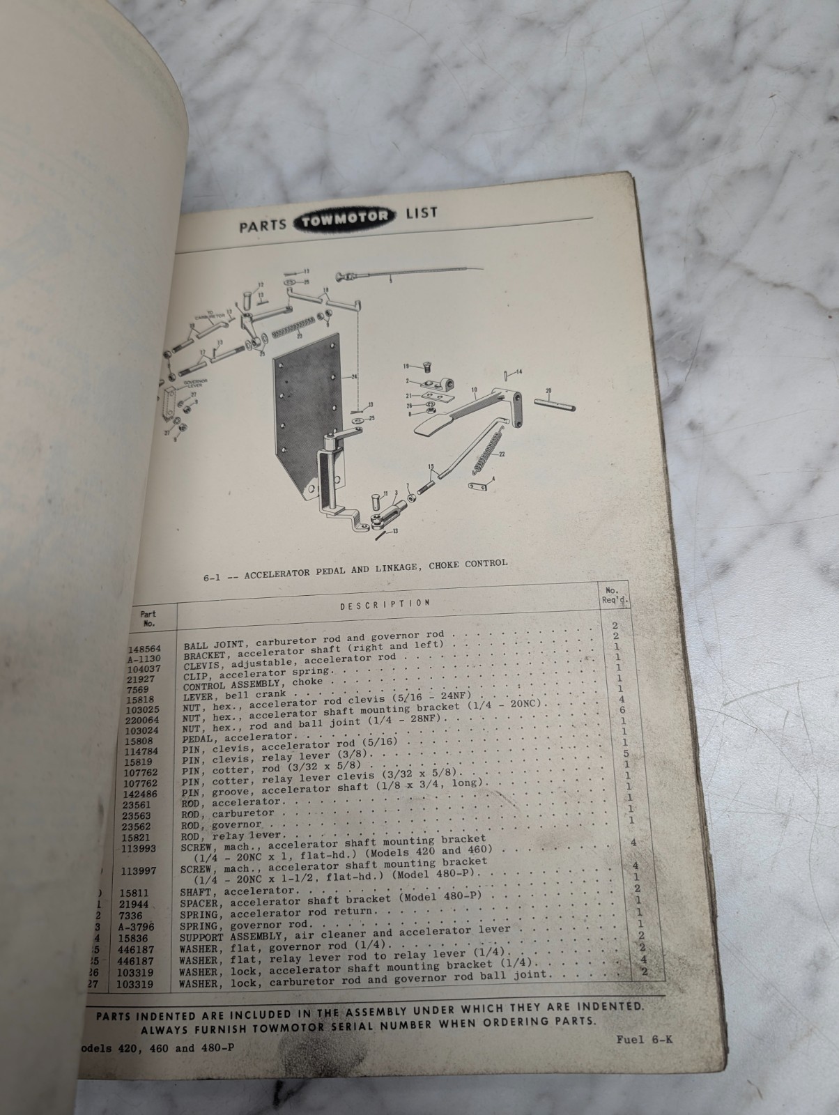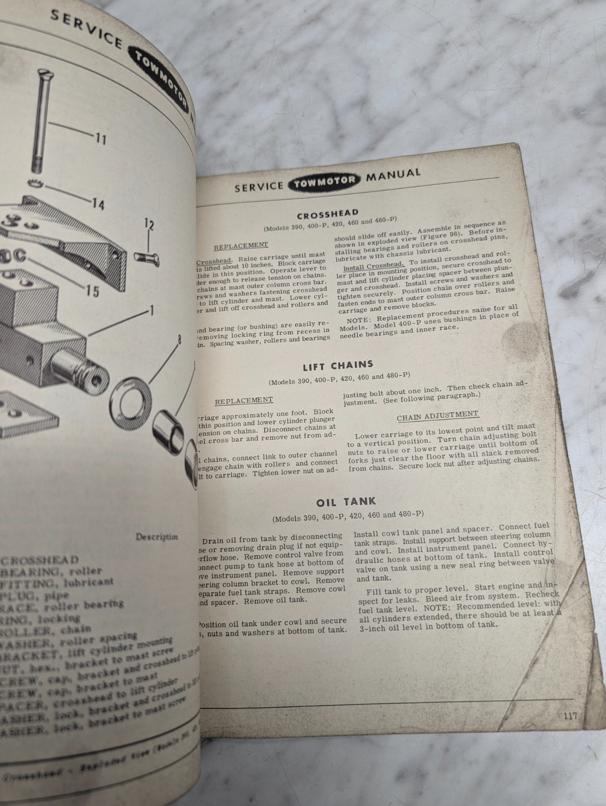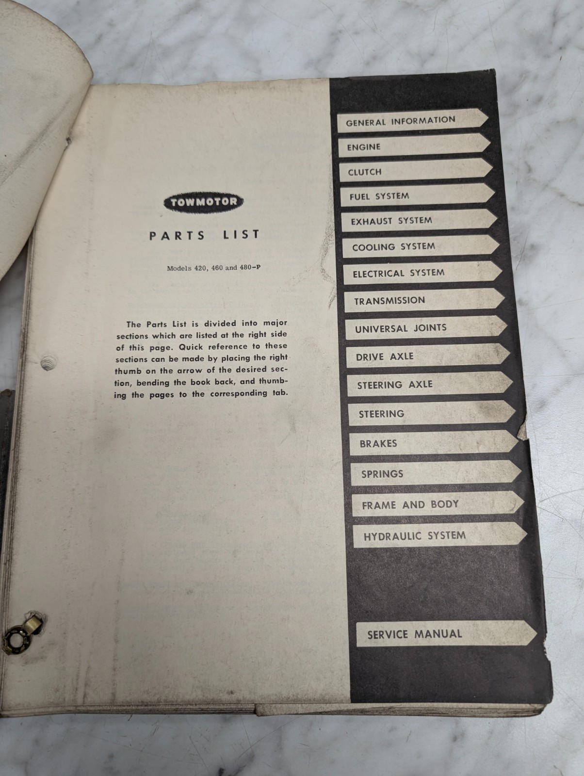 Towmotor 420 460 480-P Forklift Parts List Catalog Operator Service Manual 1952