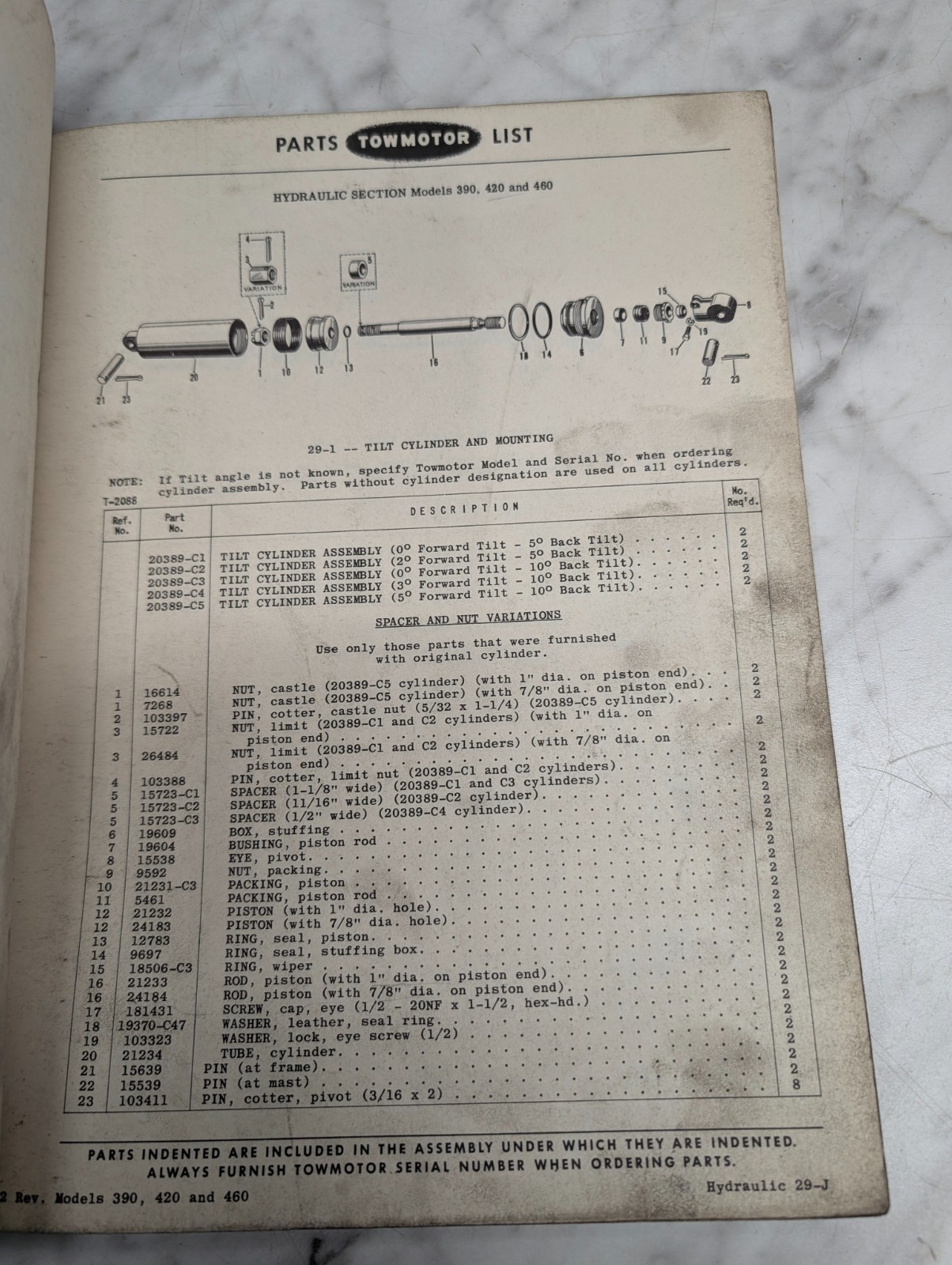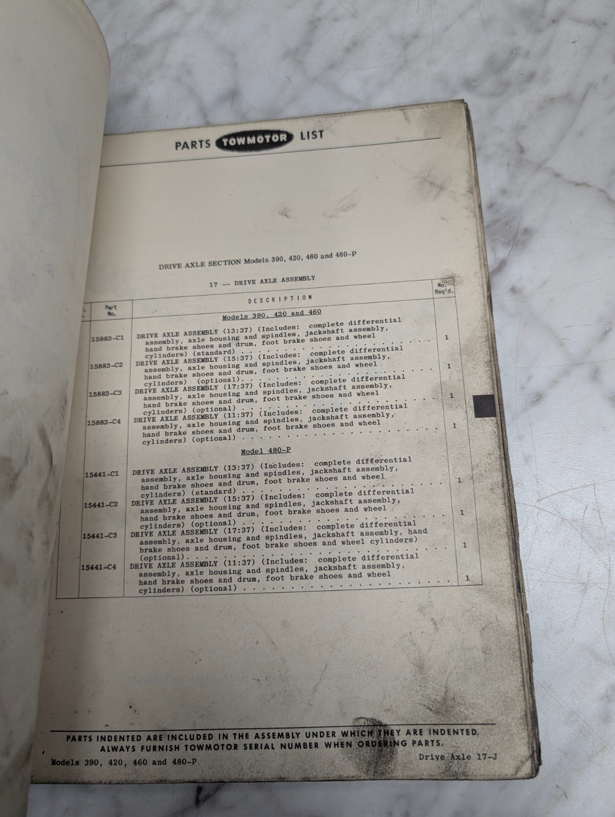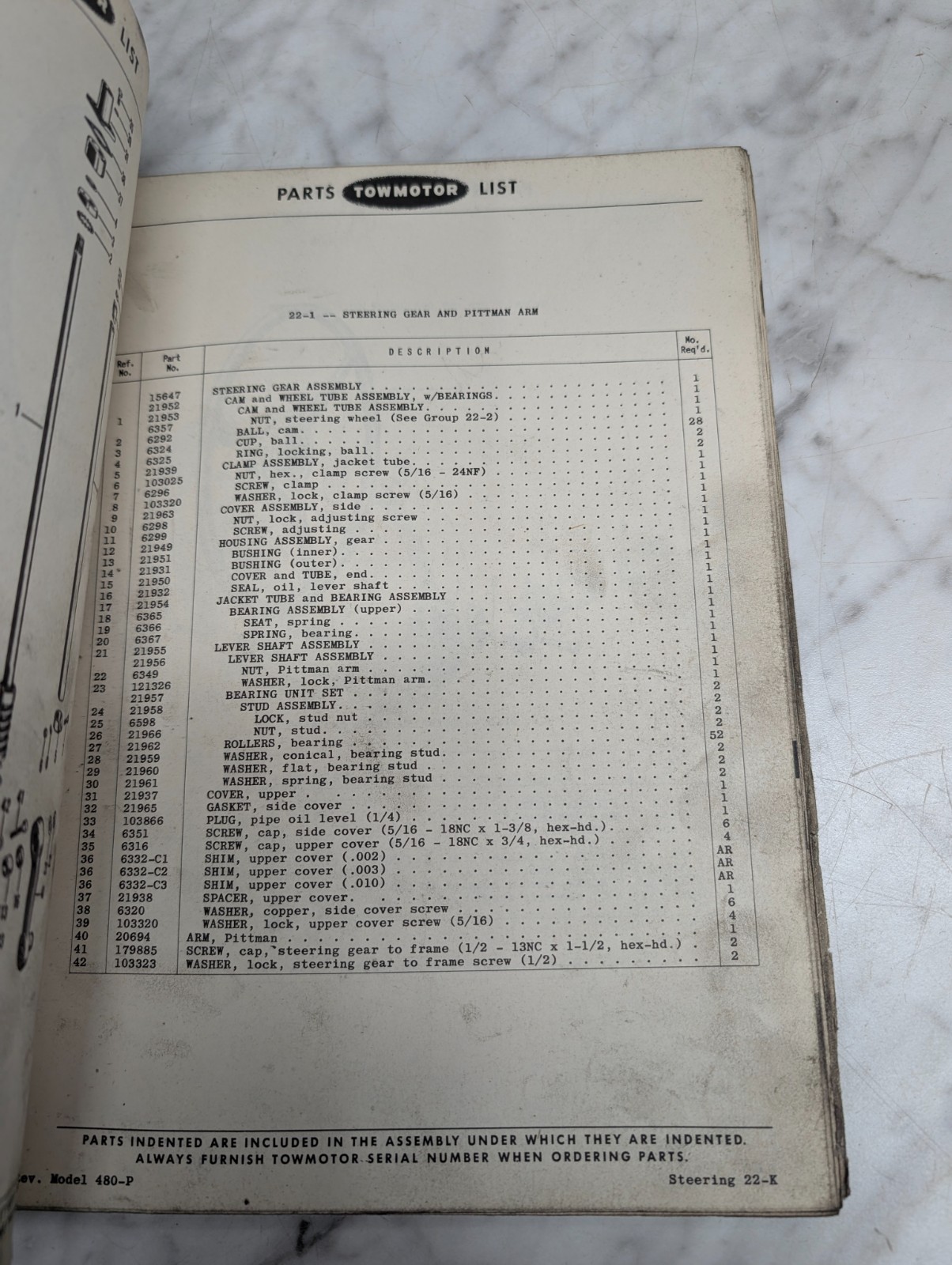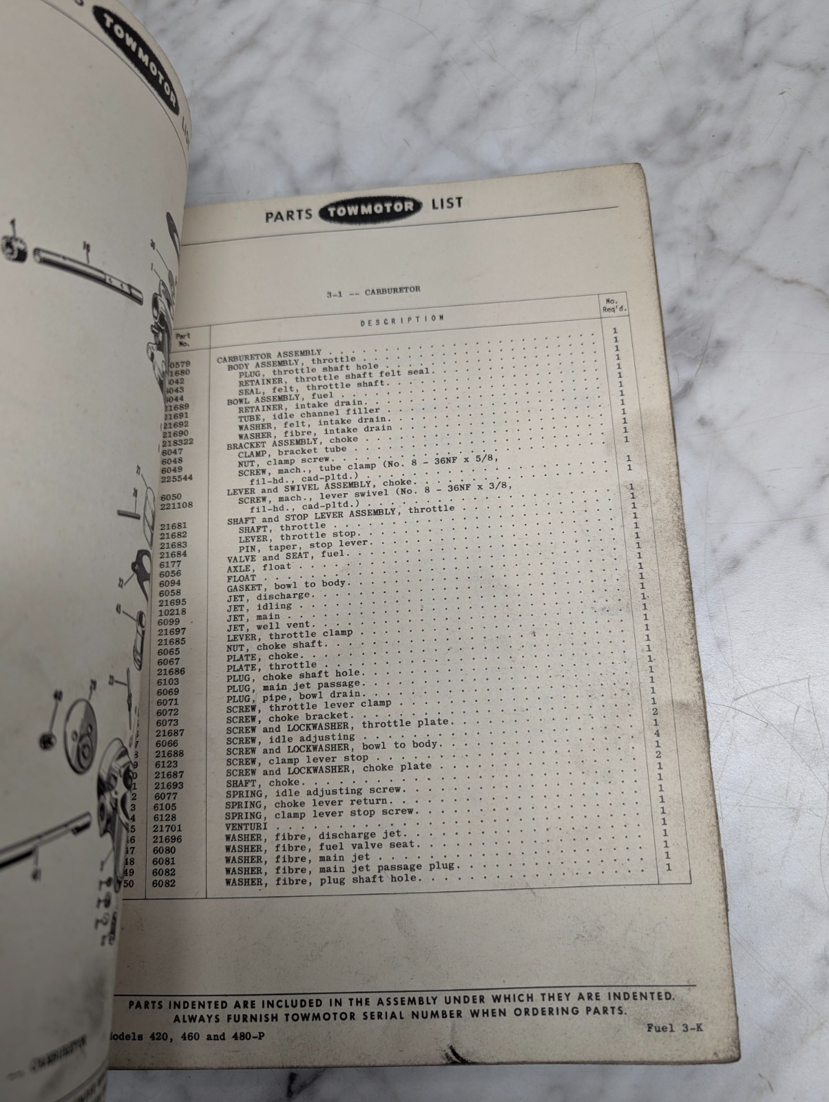 Towmotor 420 460 480-P Forklift Parts List Catalog Operator Service Manual 1952