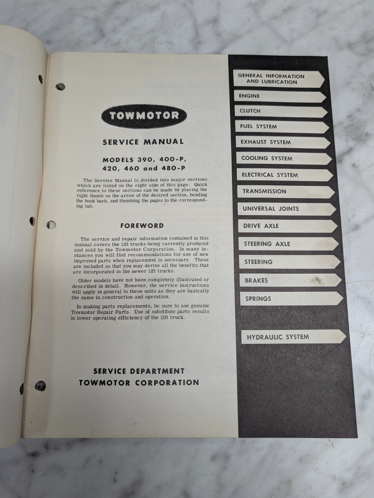 Factory service manual for towmotor.