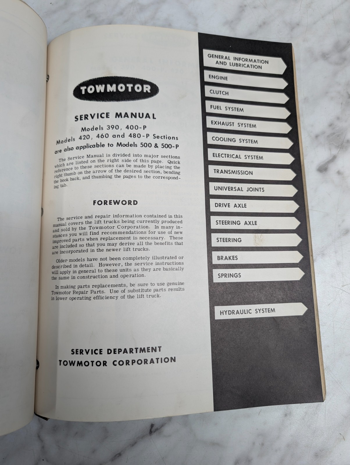 Factory service manual for towmotor.