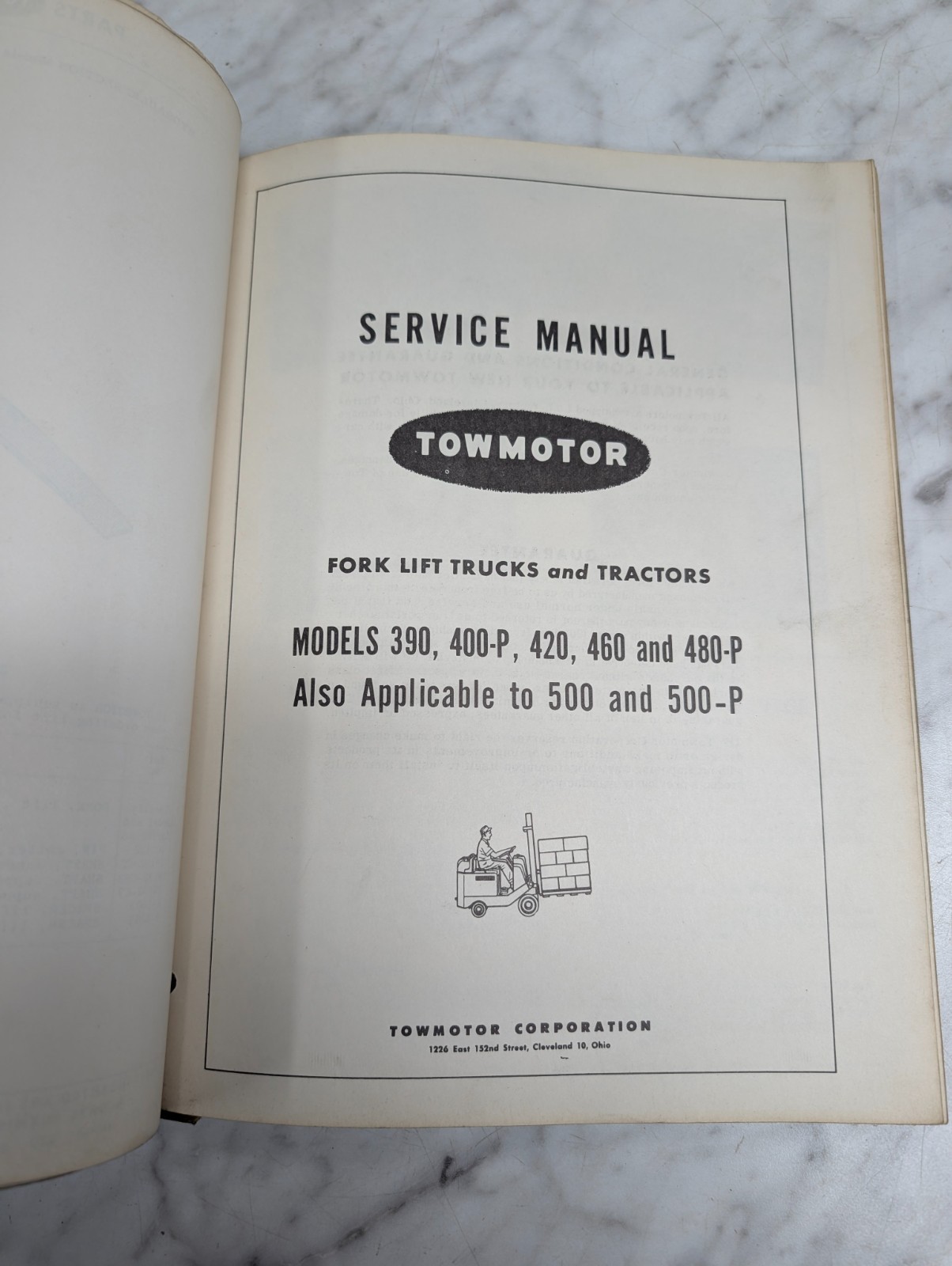 Towmotor Parts List Catalog Operator Service Manual 390 400 420 500 Forklift