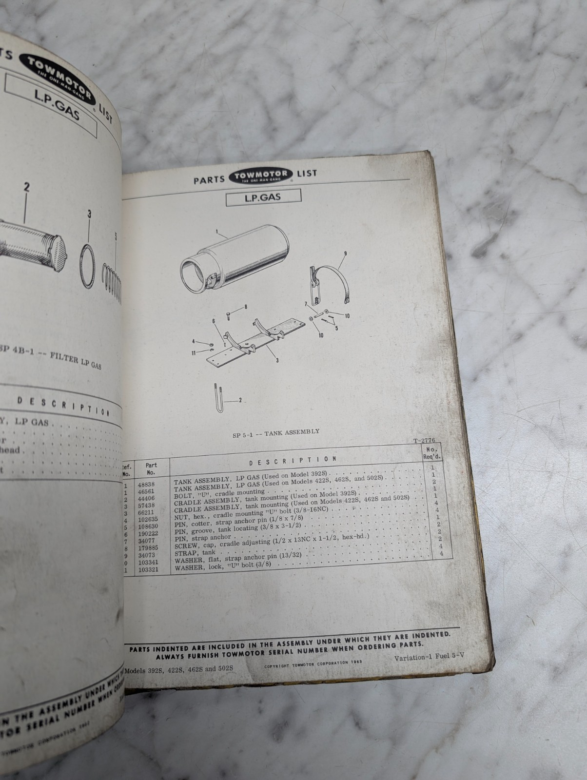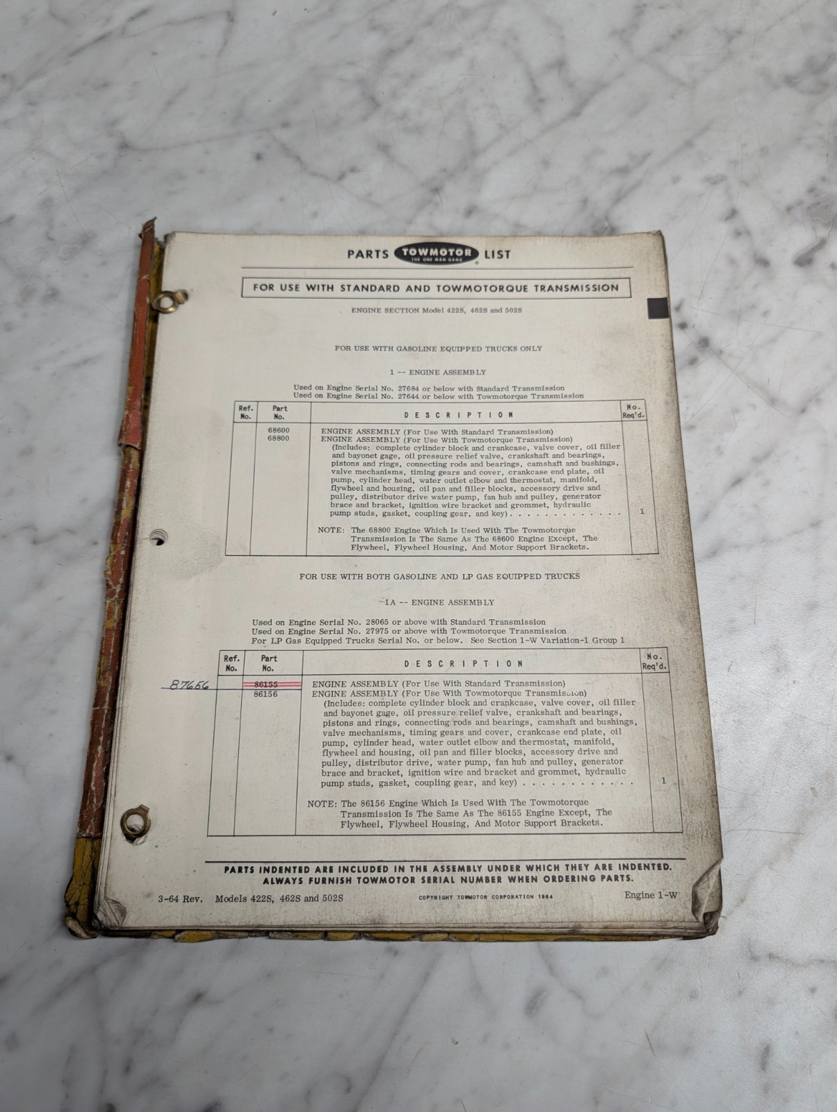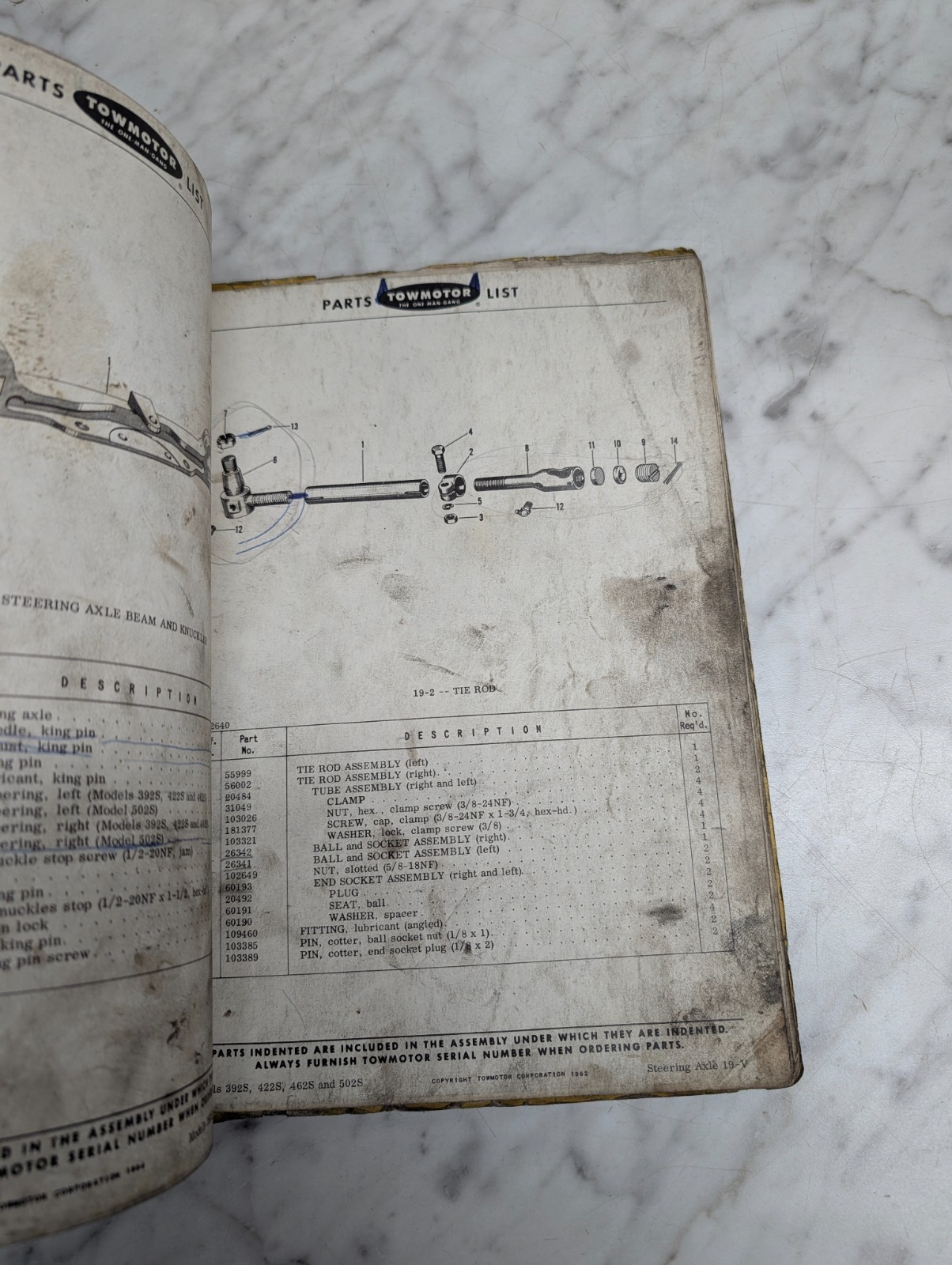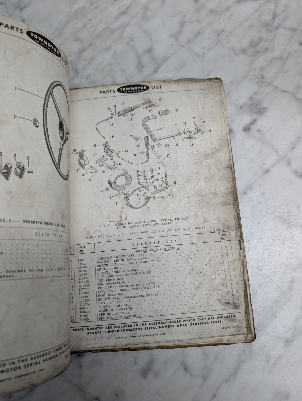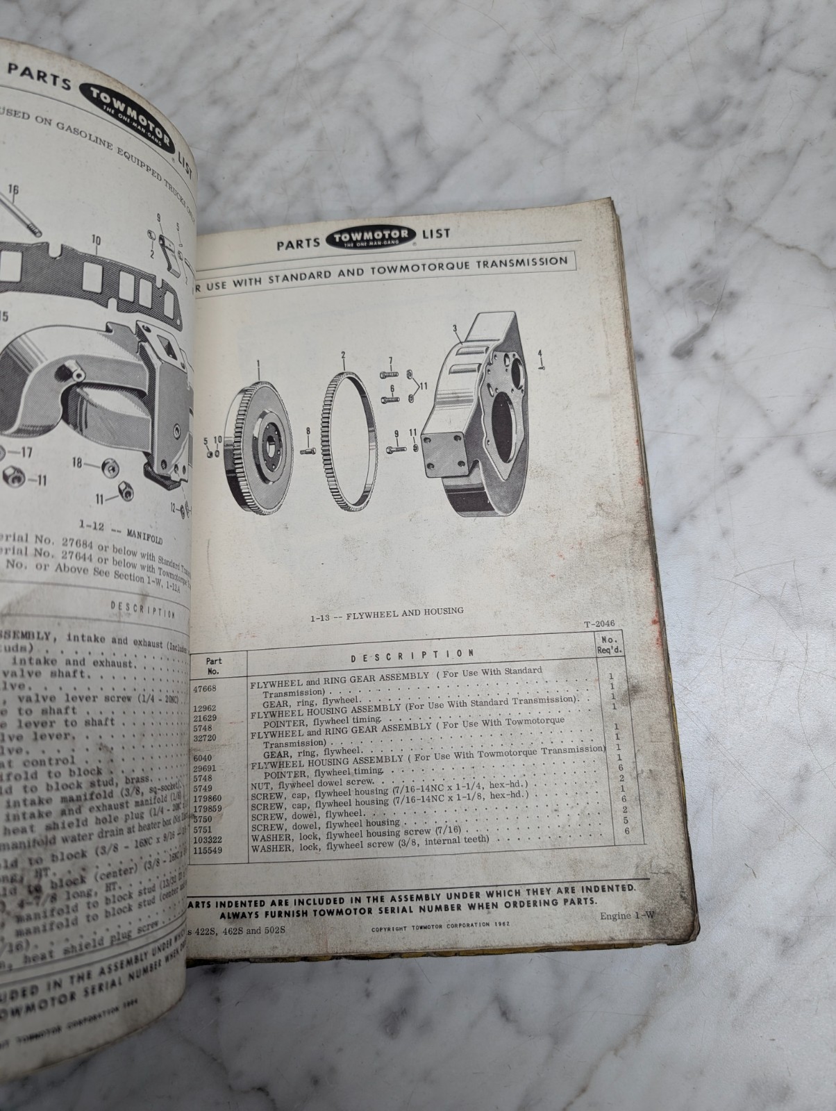 Towmotor Parts List Catalog Operator Service Manual 422S 462S 502S Forklift 1964
