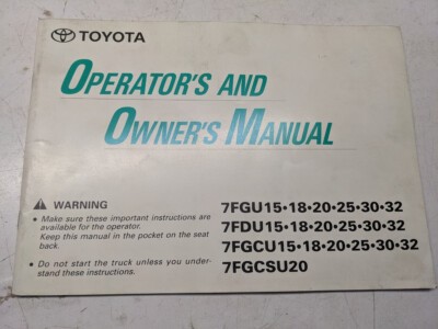 Toyota Operators Owners Manual 7F G D U C S 15 18 20 25 30 32 Forklift Truck