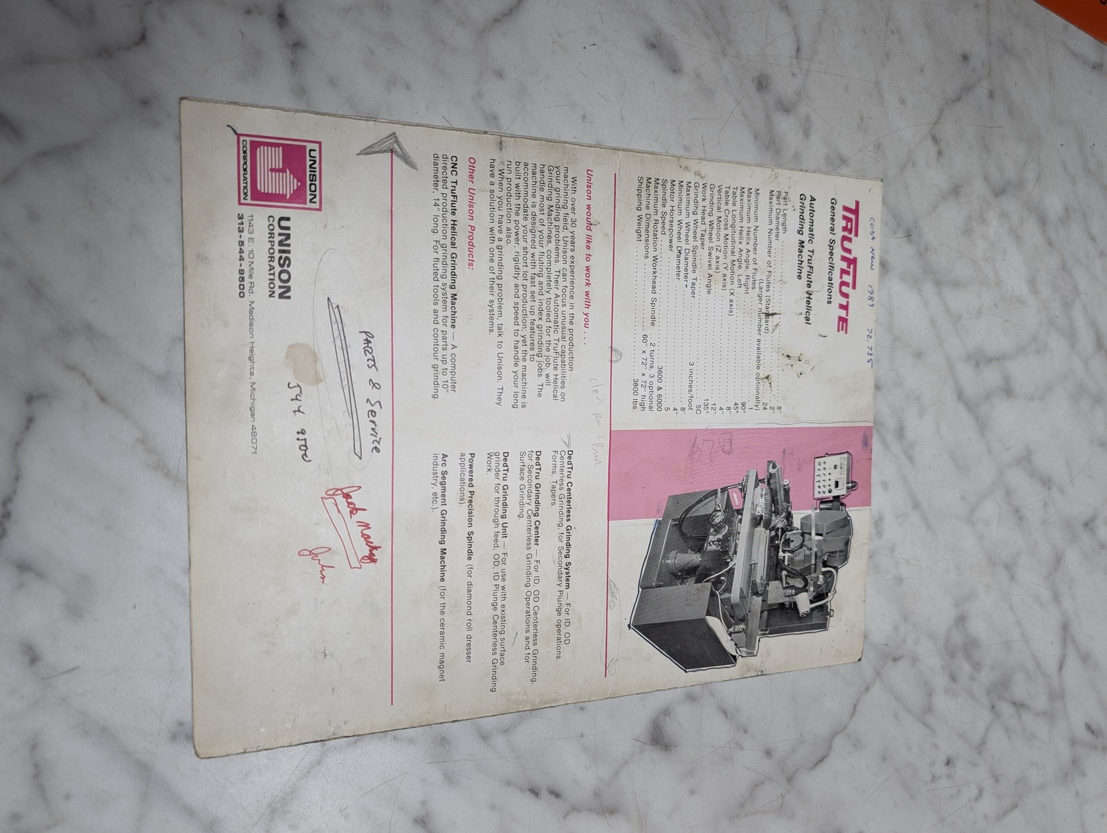 Truflute Automatic Helical Grinder Unison Sales Brochure Literature