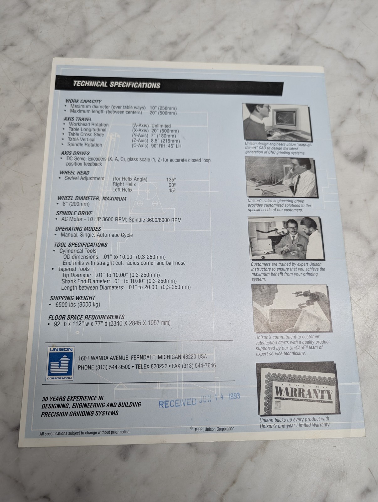 Truflute Cnc 5-Axis Helical Grinding System Model 780 780-0000 Unison