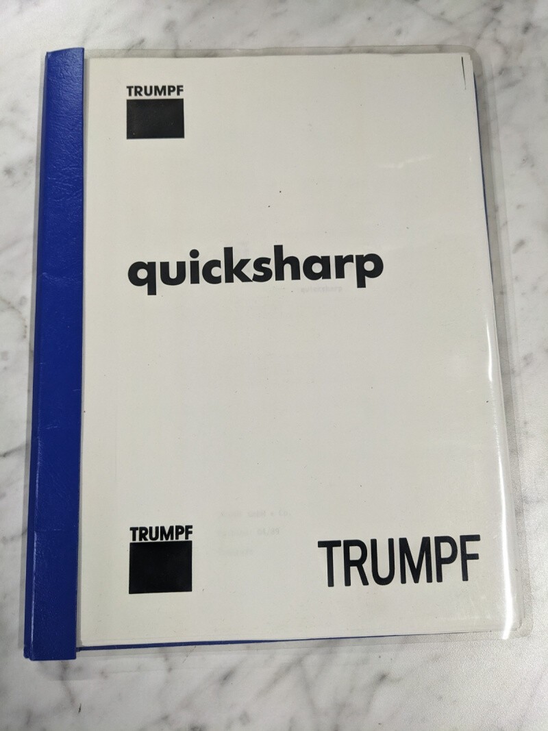 Trumpf Quicksharp Operator Manual Service Parts List Book 04/1989 French/English