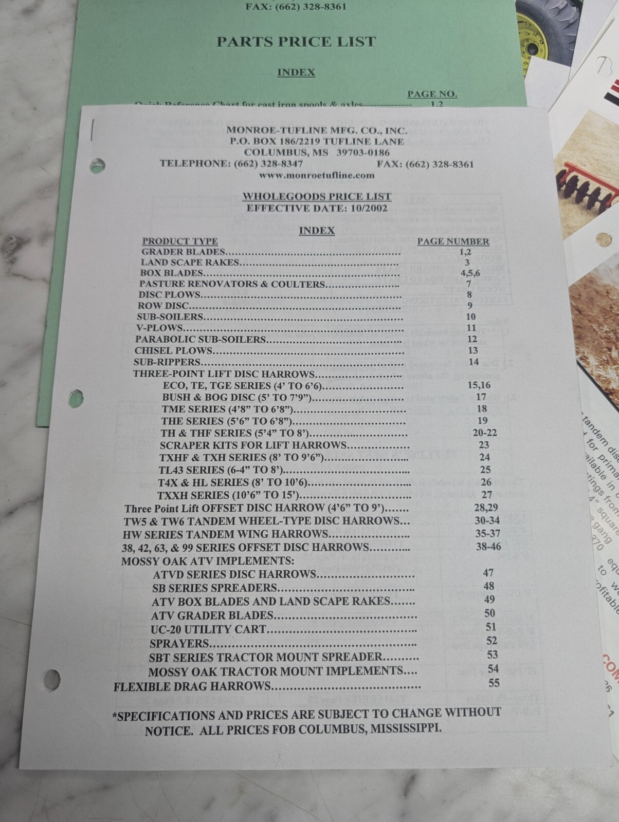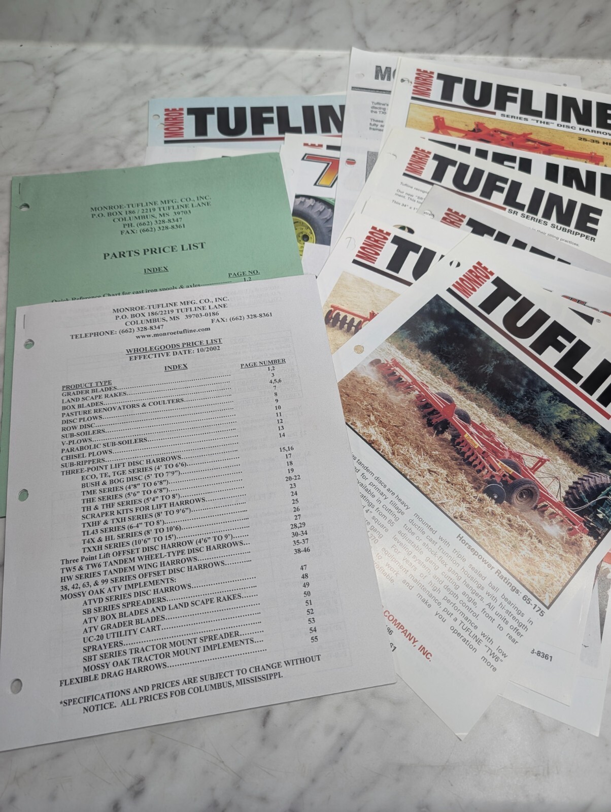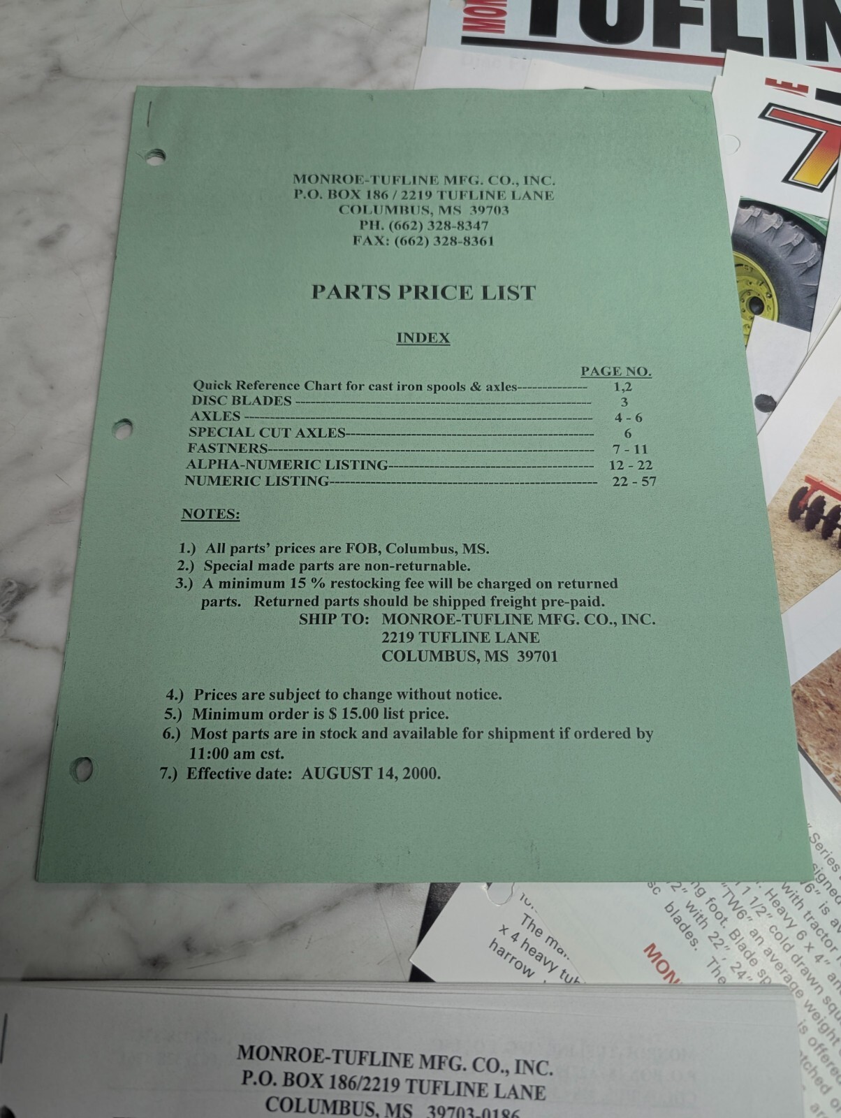 Tuffline Monroe Mfg Sales Price List & Brochures Literature Specs Information