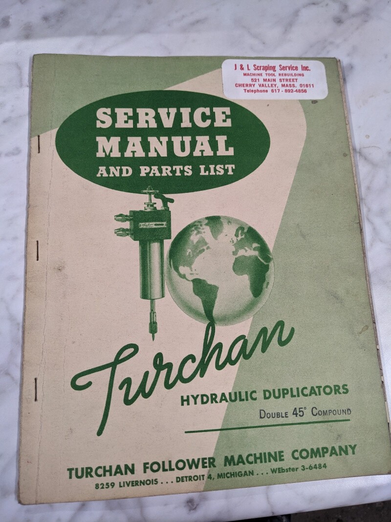 Turchan Follower Machine Hydraulic Duplicator Operator Service Manual Parts List
