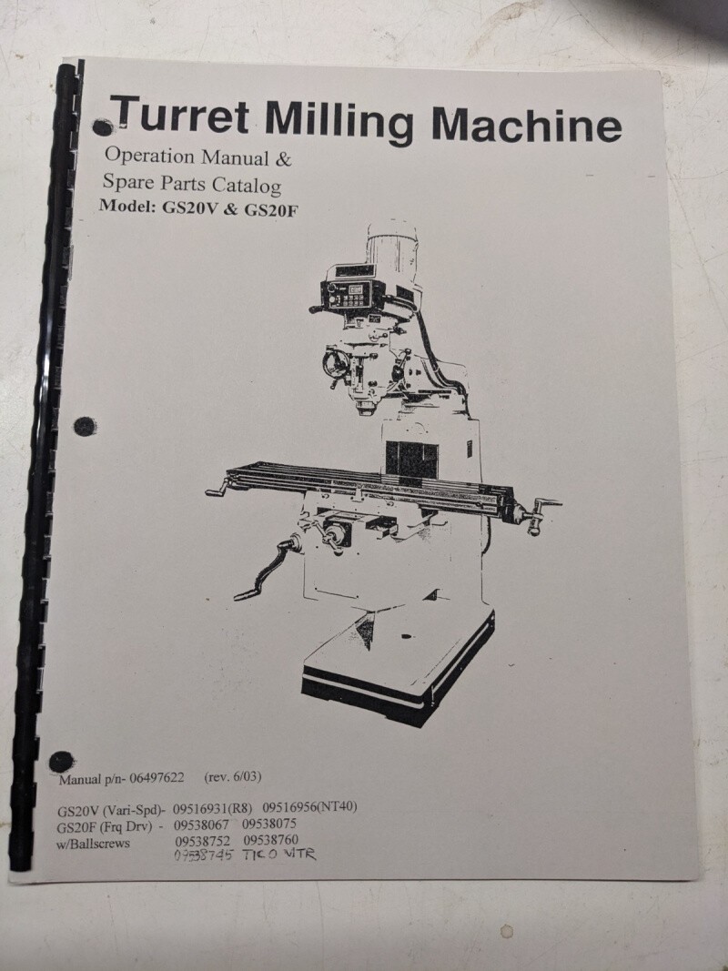 Turret Milling Machine Operation Manual Spare Parts List Catalog Gs20V F 2003