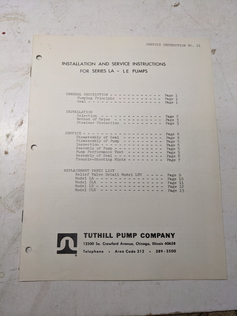Tuthill Pump Company Install Service Instruction Manual La Le Series #11