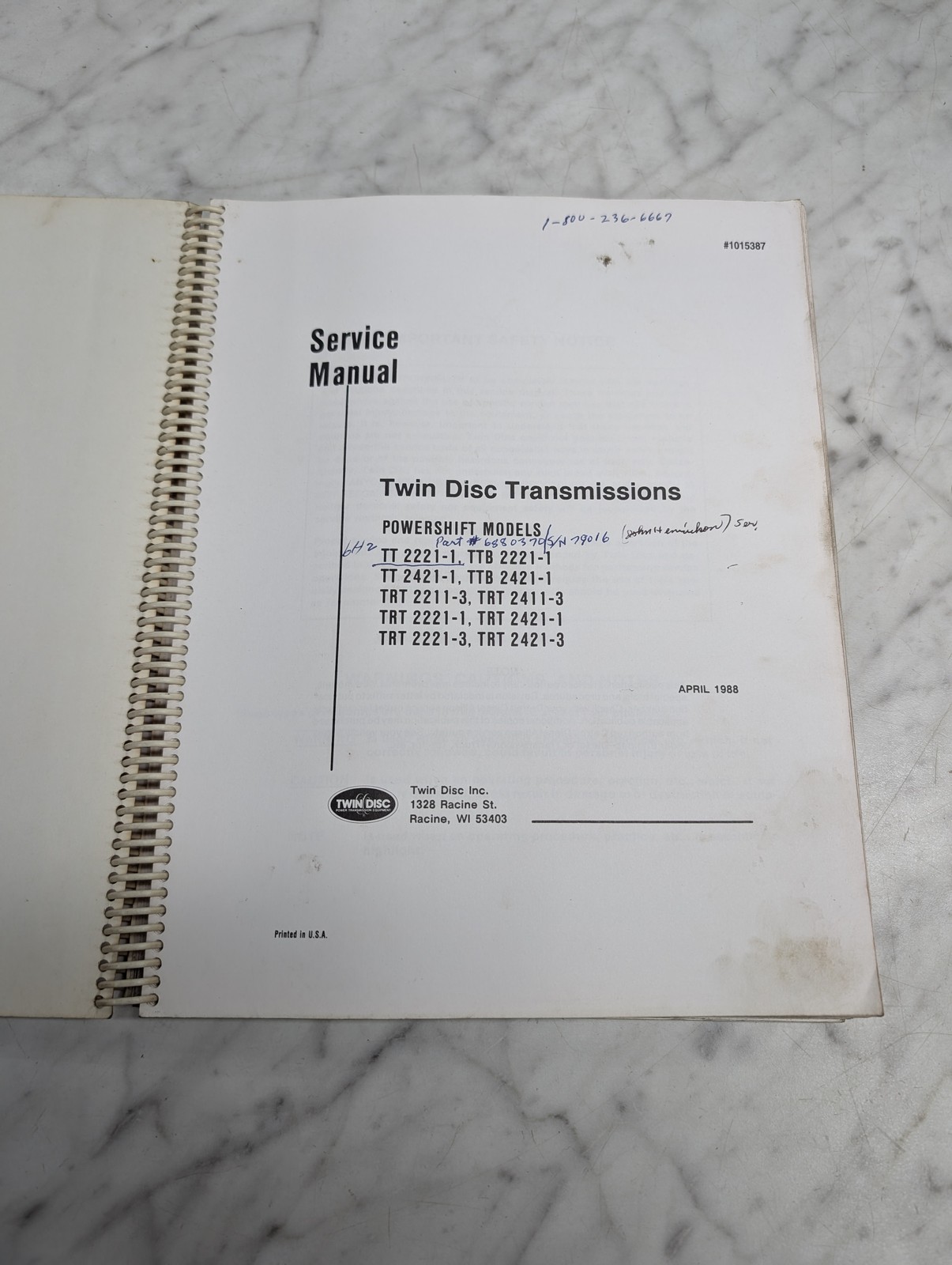 Twin Disc Tt 2221-1 Ttb 2421-1 Trt 2421-3 Service Manual Repair 1988 #1015387