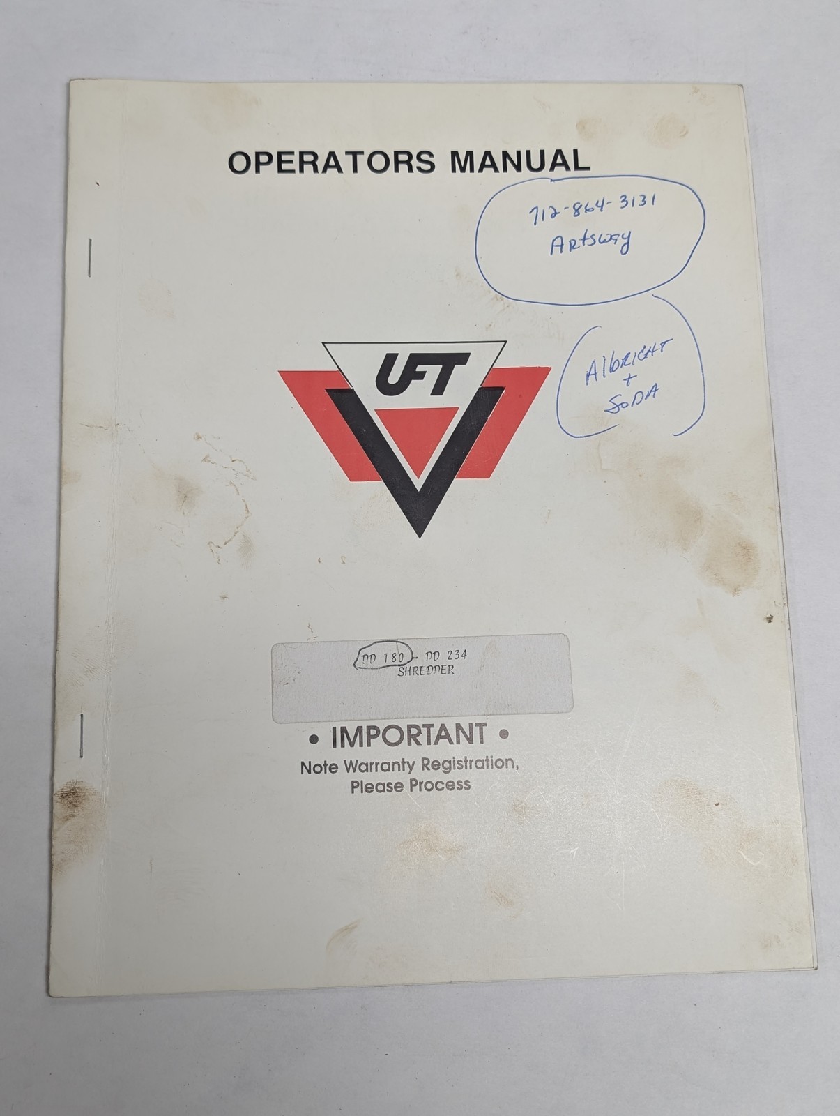 Uft United Farm Tool Dd 180 – Dd 234 Shredder Owner Operators Instruction Manual