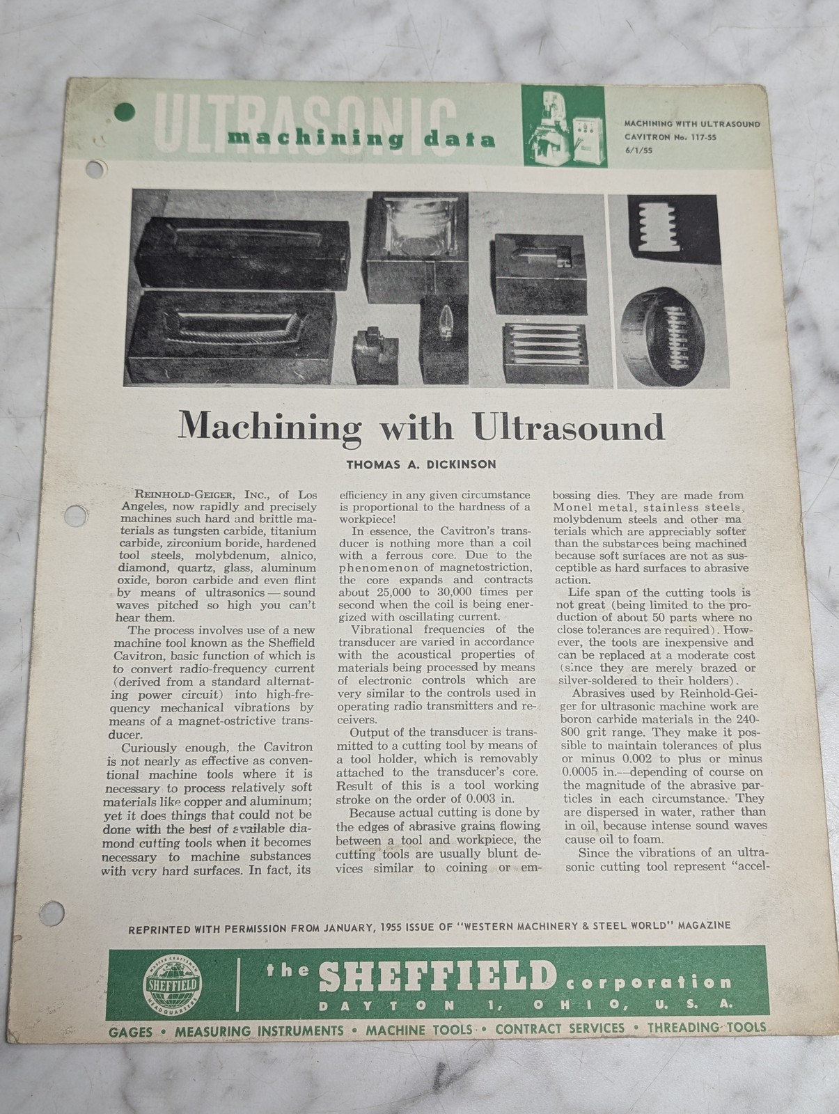 Ultrasonic Machining Data With Ultrasound Cavitron No 117 55 6 1