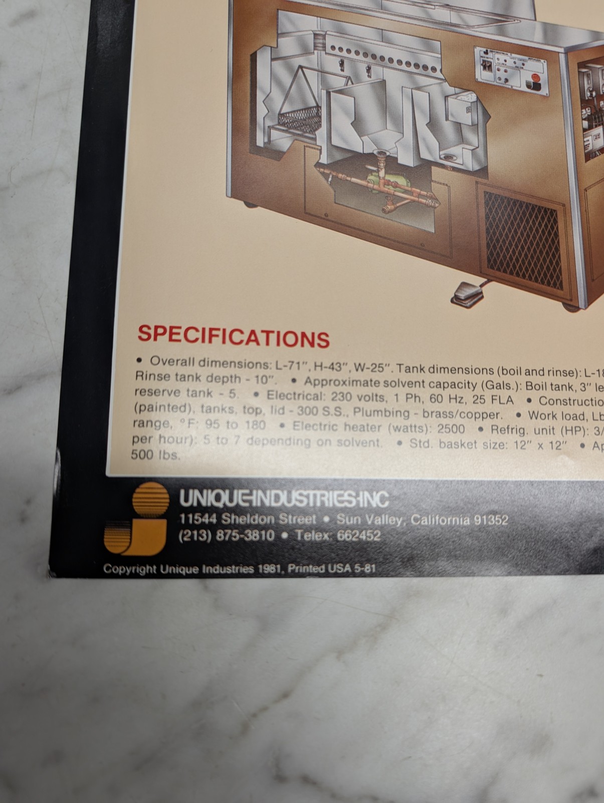 Unique Industries Anniversary Model Degreaser 10Th 1971 1981 Sales Brochure