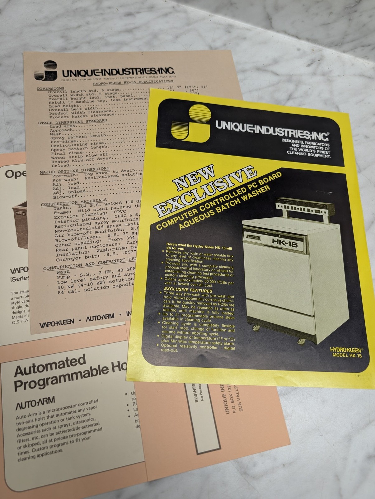 Unique Industries Hydro Kleen Model Hk 15 Specifications Sales Brochure
