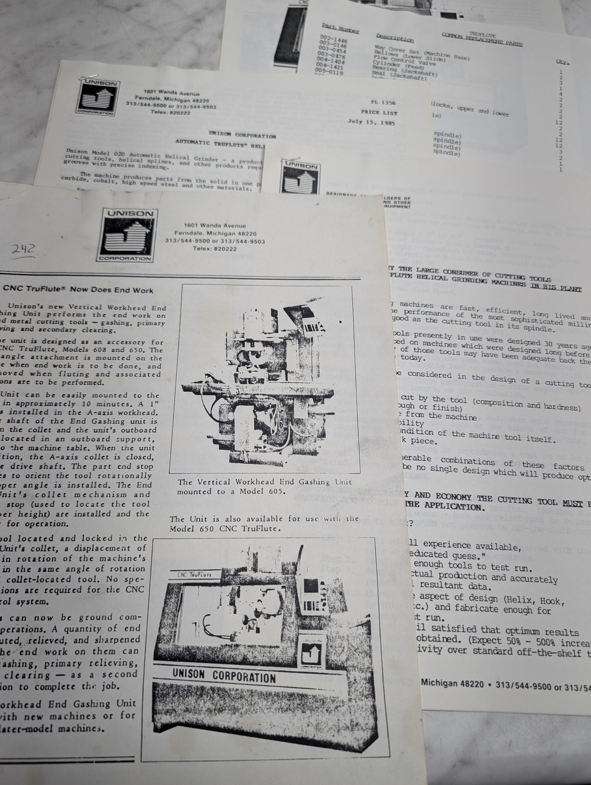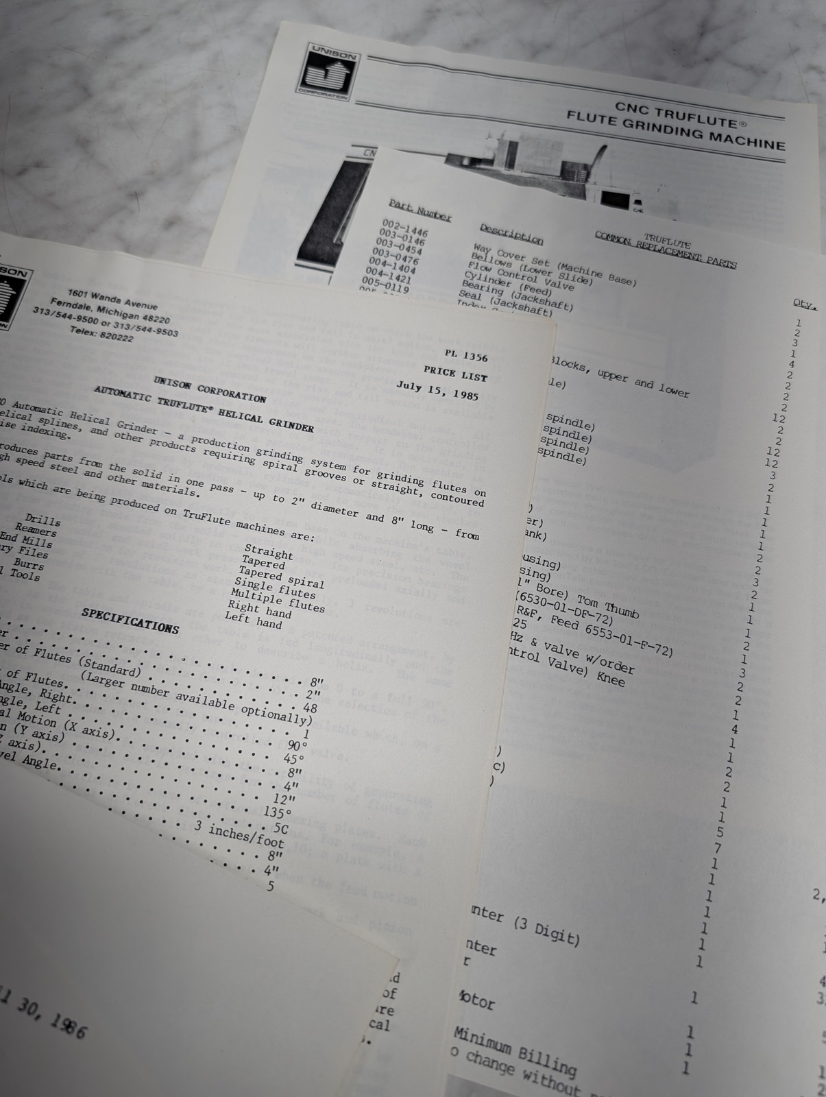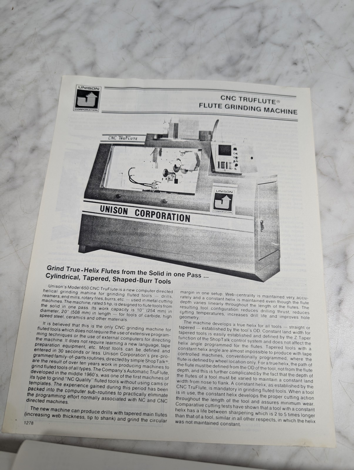 Unison Cnc Truflute Flute Grinding Machine Pl 1356 Sales Brochure Technical Info