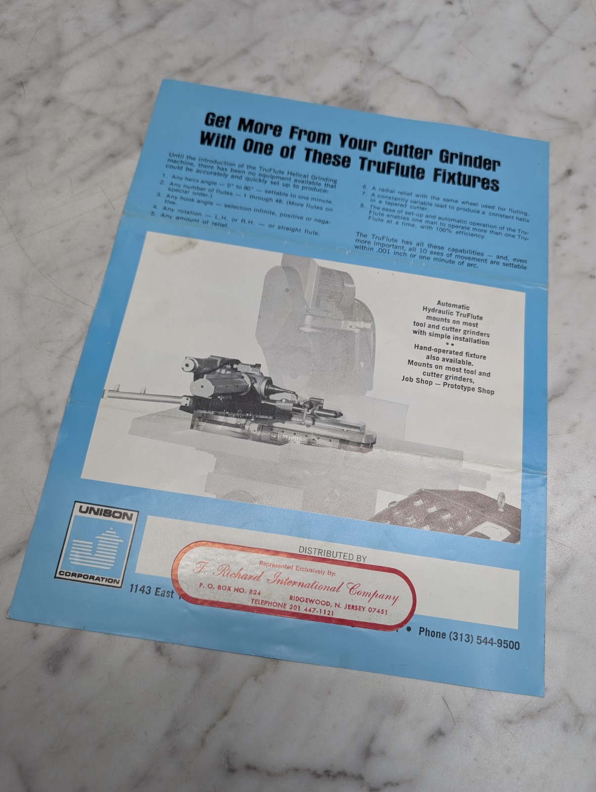 Unison Tru Flute Automatic Helical Grinder Usa 001-73 Sales Brochure Literature