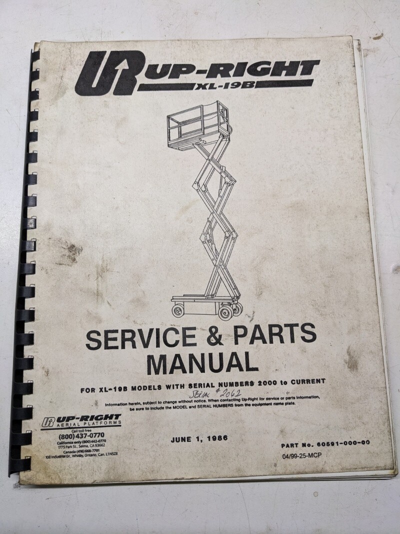 Upright Xl-19B Service Repair Manual Parts List Book Catalog 1986 Arial Platform