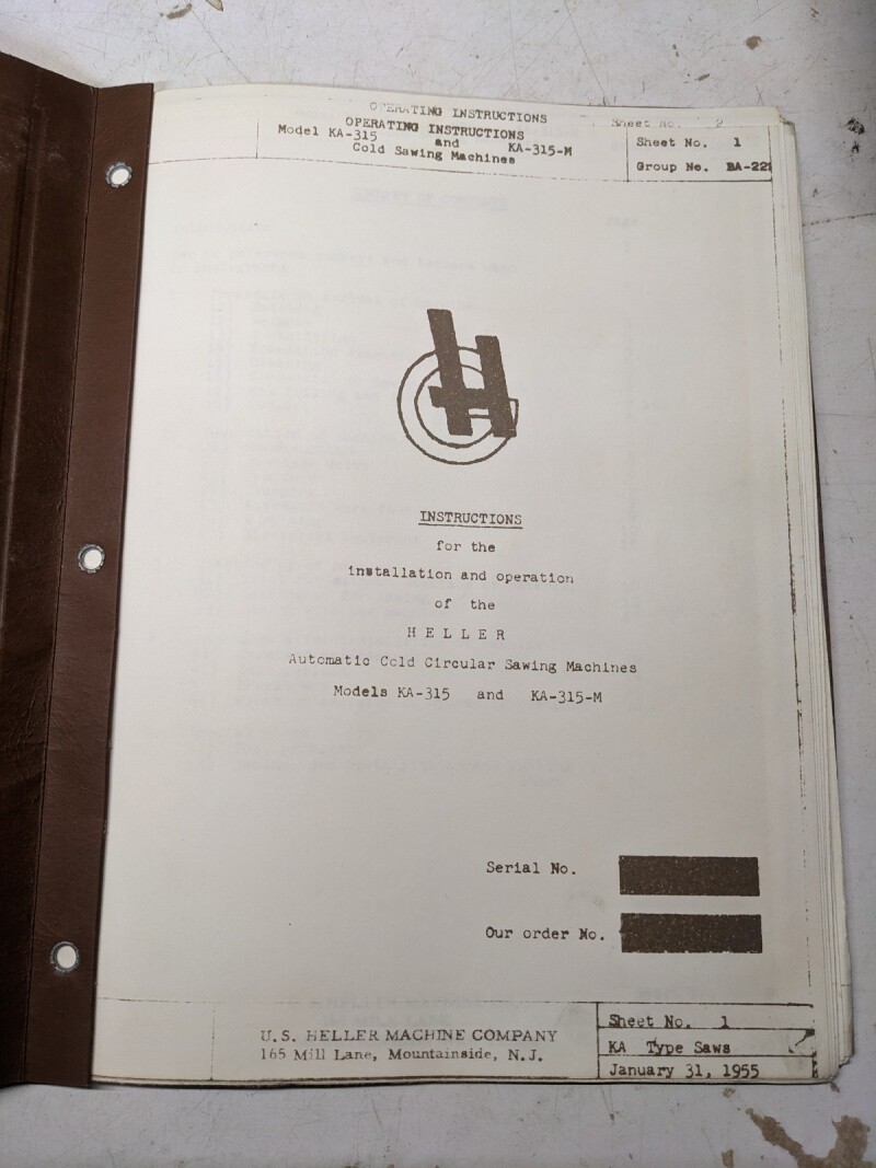 Us Heller Machine Instruction Service Manual Operator Sawing Machine Ka-315-M