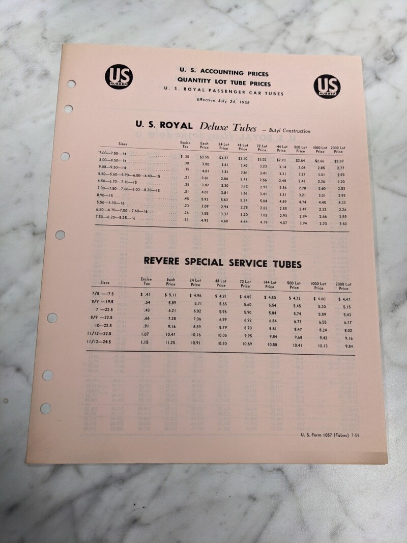 Us Royal Rubber Price List Sales Brochure Effective July 24 1958 Passenger Car