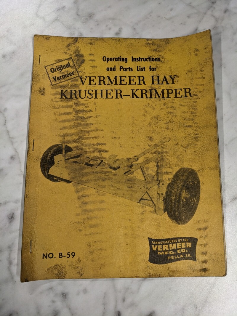 Vermeer Mfg Hay Krusher-Krimer Operator Service Manual Parts List Book B-59