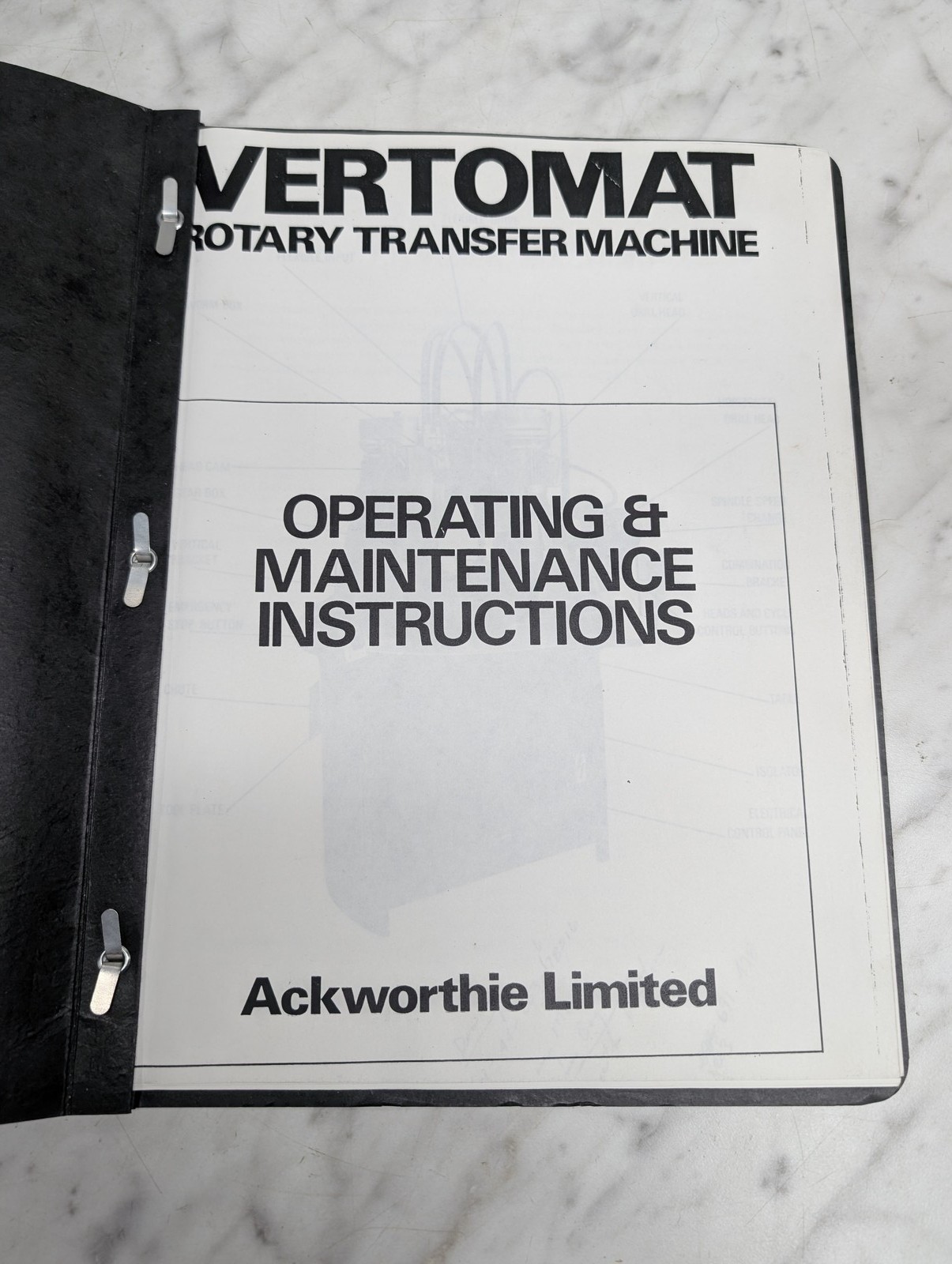 Vertomat Rotary Transfer Machine Operating & Maintenance Instruction Manual