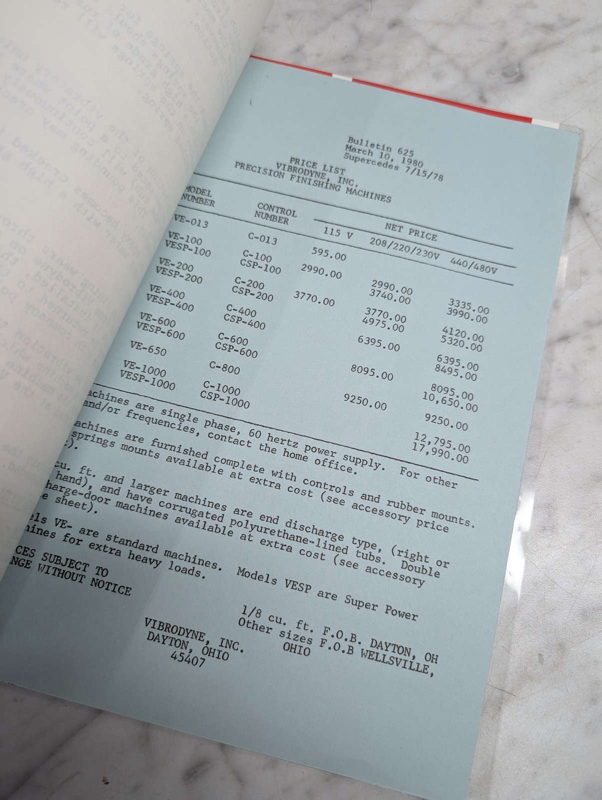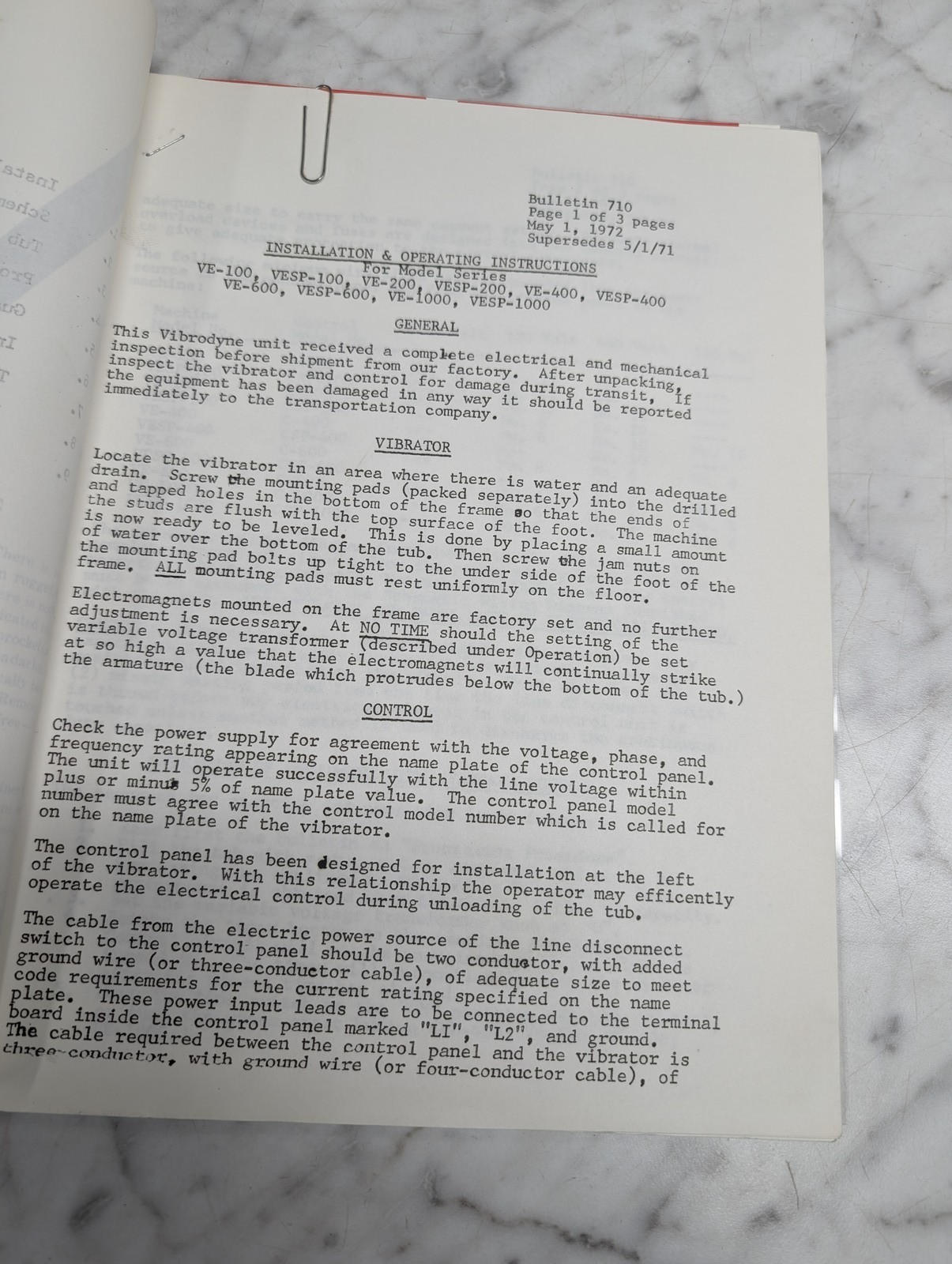 Vibrodyne Vibratory Finishing Machines Instruction Manual Ve Vesp 100-1000