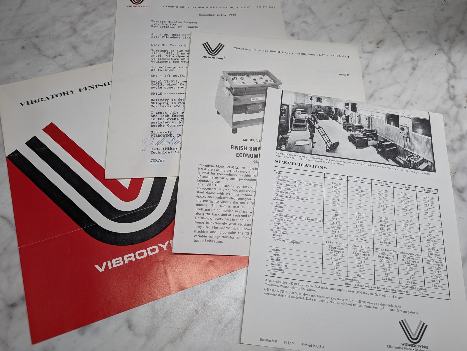 Vibrodyne Vibratory Finishing Machines Sales Brochure Information Literature