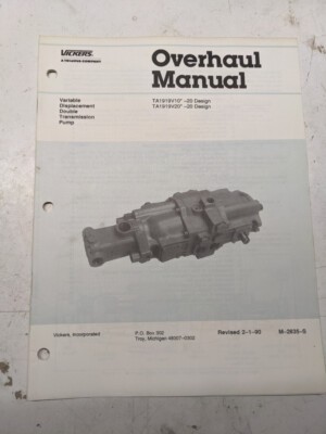Vickers Overhaul Manual Transmission Ta1919V10 Ta1919V20 -20 Design 1990 M-2835