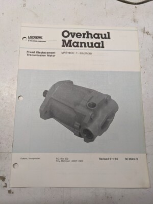 Vickers Transmission Mfe19(X)-*-20/21/30 1985 M-2843-S Overhaul Service Manual