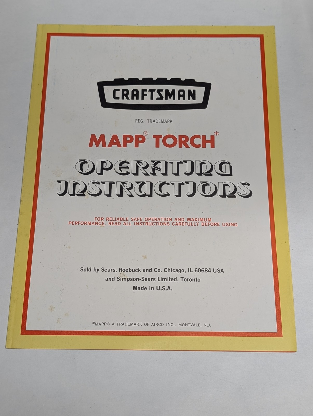 Vintage Craftsman Mapp Torch Operating Instructions Manual Sears Roebuck