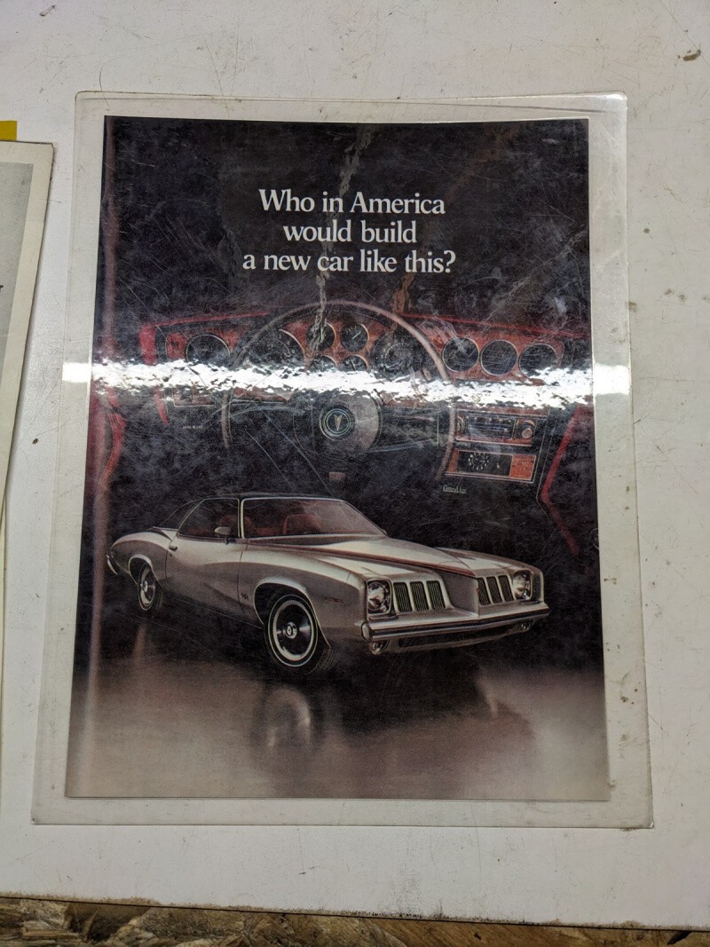 Vintage Pontiac Grand Am Autombile Car Silver Wide-Track Gm Ad Laminated Print