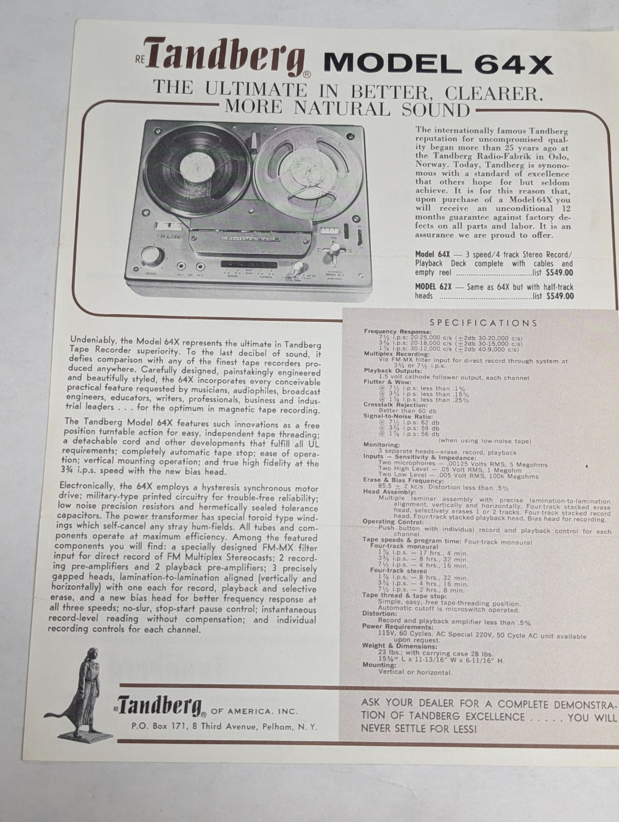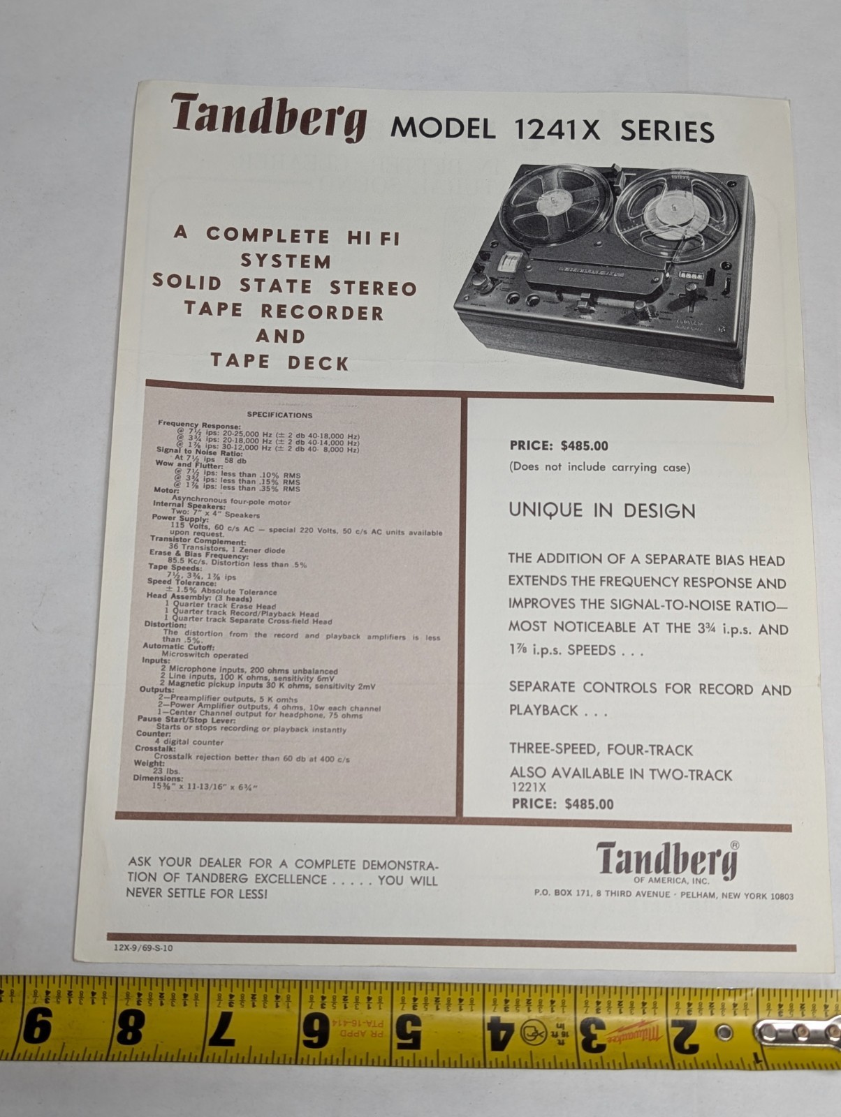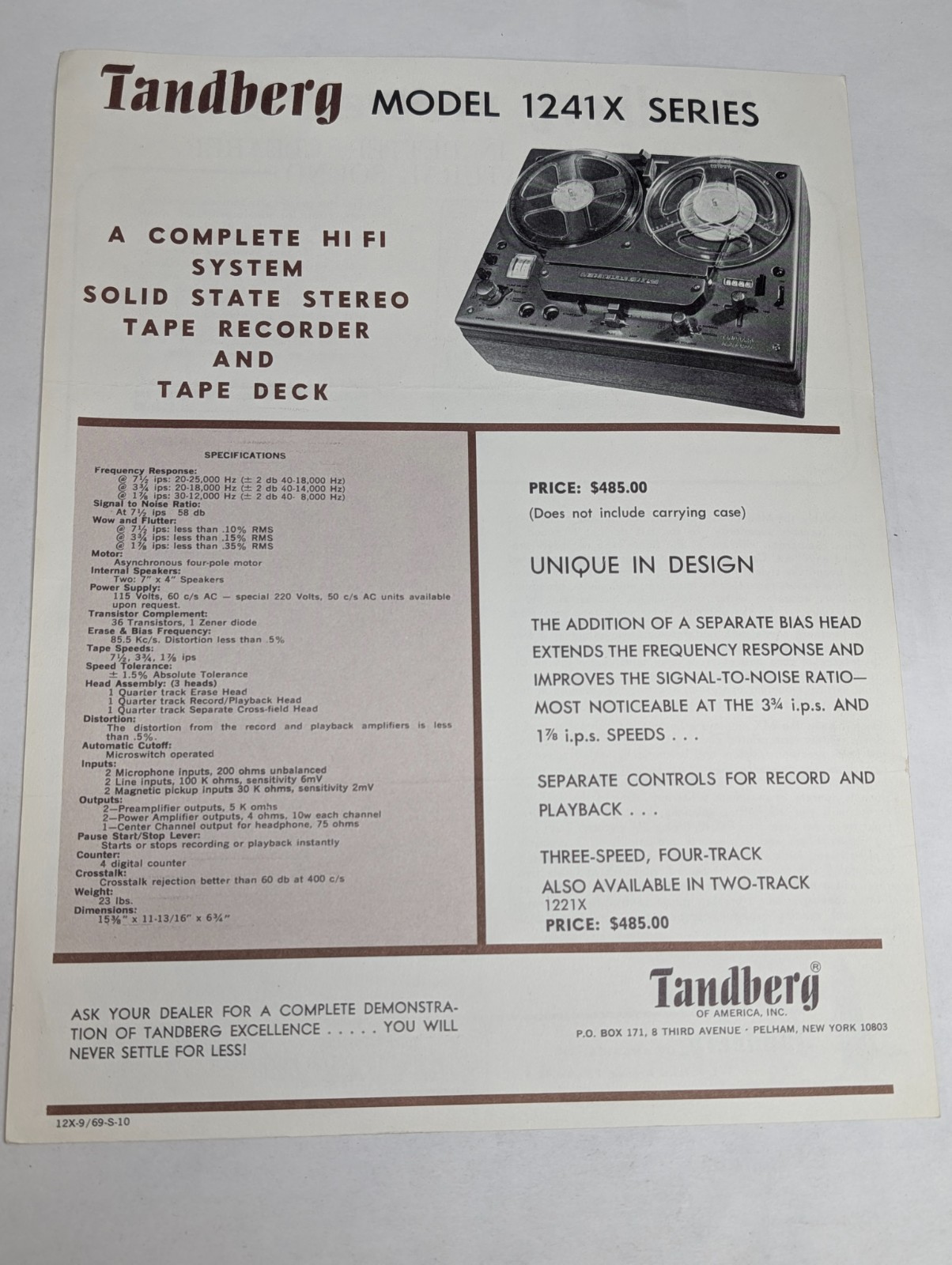 Vintage Tandberg 1241X Series Sales Brochure Catalog Sheet Literature Specs