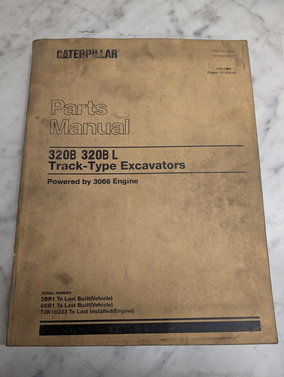 Vol 1 Caterpillar Service Parts List Catalog Manual 320B L Excavator Xebo7645-03