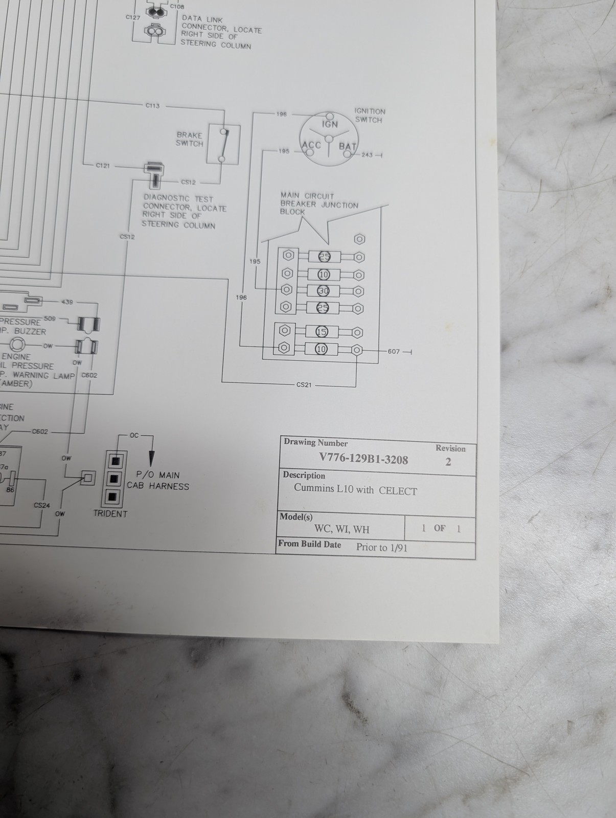 Volvo Cummins L10 Celect Wc Wi Wh V776 129B1 3208 Drawing Rev. 2 Diagram 1991